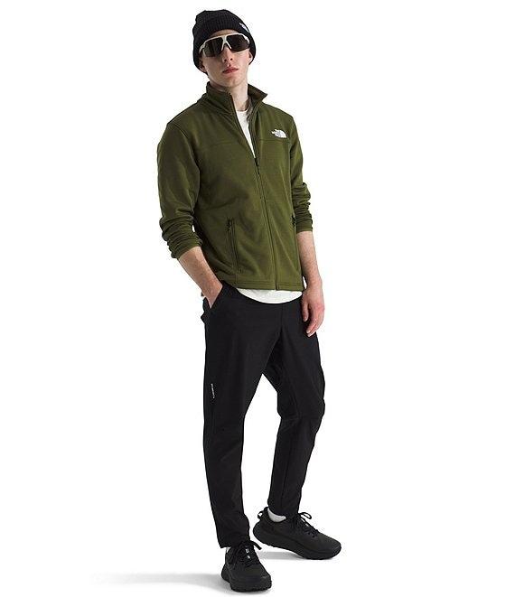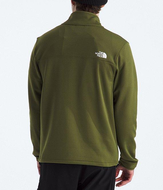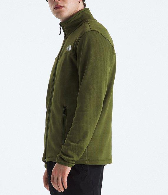 From The North Face, this jacket features: Stand collar Long sleeves Set-in sleeves with forward-set shoulder seams Reverse-coil center front zipper Secure-zip hand pockets "The North Face" logo and icon logo detail embroidered on the left side of chest and back-right shoulder Reinforced binding on the collar, cuffs and hem for added comfort and durability Regular fit Recycled polyester/elastane flat-grid fleece; binding of polyester/elastane Machine wash/tumble dry Imported.