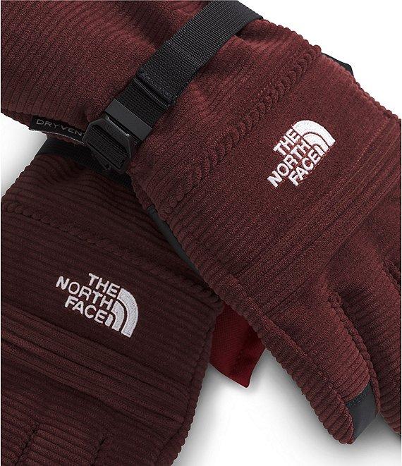 From The North Face, these gloves feature: DRYVENT™ insert to help keep hands dry Back of hand and palm lined with super-soft raschel fleece Gauntlet lining made with wind-resistant WINDWALL™ fabric HEATSEEKER™ synthetic insulation in back of hand, palm, and gauntlet is made with hollow-core fibers for added warmth, performance, and durability Faux-leather palm overlay for added durability Progressive Precurve is the cumulative increase of curvature from index finger to pinkie, creating a more natural shape for your fingers as they relax in the glove Etip™ functionality works with touchscreen devices Nose wipe Webbing strap with a buckle on the back of the hand and shock cord with a cord lock at the gauntlet hem for an adjustable fit Zigzag stitch with elastic at wrist for a better fit Webbing cuff pull Removable wrist leash helps prevent gloves from dropping, and a pairing clip helps keep them together when you're not wearing them "The North Face" heat-transfer logo and icon logo detail Shell of recycled polyester corduroy; palm overlay of polyester/polyurethane/cotton faux leather; thumb and index finger Etip™ compatible; back-of-hand and palm lining of recycled polyester raschel fleece; gauntlet lining of WINDWALL™ recycled polyester with non-PFC durable water-repellent (non-PFC DWR) finish; back-of-hand insulation of HEATSEEKER™ post-consumer recycled polyester; palm insulation of HEATSEEKER™ post-consumer recycled polyester; gauntlet insulation of HEATSEEKER™ 70% post-consumer recycled polyester; insert DRYVENT™ Machine wash/tumble dry Imported.