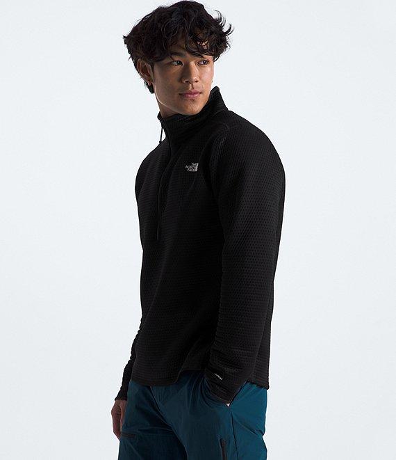 From The North Face, this pullover features: Regular fit Stand collar Long sleeves Exposed center front quarter zip Sleeves have a hybrid construction: set-in in front and raglan in back Elastic-bound collar and cuffs Heat transfer logo on the left side of the chest and back right shoulder Dot Knit Thermal is an insulating mid layer that actively moves moisture away from the body to help regulate your core microclimate during activity Flash Dry-Pro™ materials actively pull moisture away from the body to help keep you feeling dry and comfortable during activity Recycled polyester Machine wash/tumble dry Imported