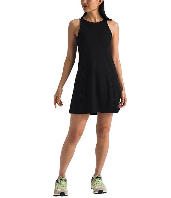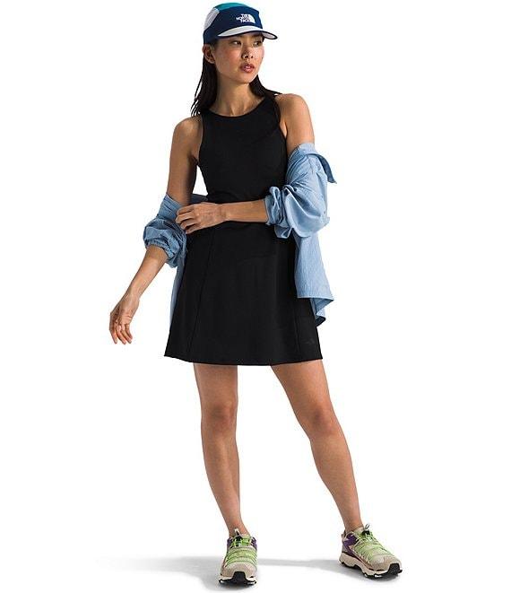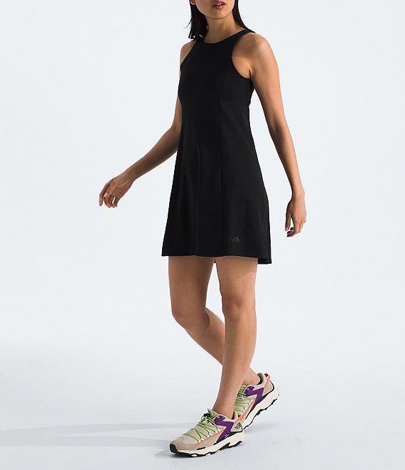 From The North Face, this dress features: Ultra soft knit fabrication A-line silhouette Crew neckline Sleeveless Scoop back Low profile internal thigh pockets Built-in body liner for dynamic coverage Anti-odor technology FlashDry moisture managing material Heat transfer logo on left hem zigzag-stitch woven logo label on center back Straight hemline Pullover construction Approx. 28" length Recycled polyester Machine wash/tumble dry Imported. With FLASHDRY moisture-managing materials and anti-odor technology, the buttery-soft and versatile Dune Sky Dress is ready for everything from training to the trail and beyond. Featuring a scoop-back design for a more refined look and low-profile thigh pockets for on-the-go storage, this dress will be your go-to for just about any occasion. /Sizes: XS, S, M, L, XL, XXL/Center Back: 28 /body: 251 g/m recycled polyester, elastane knit interlock/lining: 252 g/m recycled polyester, elastane knit interlock with FLASHDRY /Fitted/Ultra-soft Dune Sky fabric/FLASHDRY materials offer enhanced moisture management to help keep you comfortable/Anti-odor technology helps keep the fabric feeling fresh/Body fabric made with recycled polyester lining made withrecycled polyester/Jewel neckline for flattering coverage/Scoop back for an elegant look/Built-in body liner for dynamic coverage/Low-profile internal thigh pockets for storage/Heat transfer logo on left hem zigzag-stitch woven logo label on center back