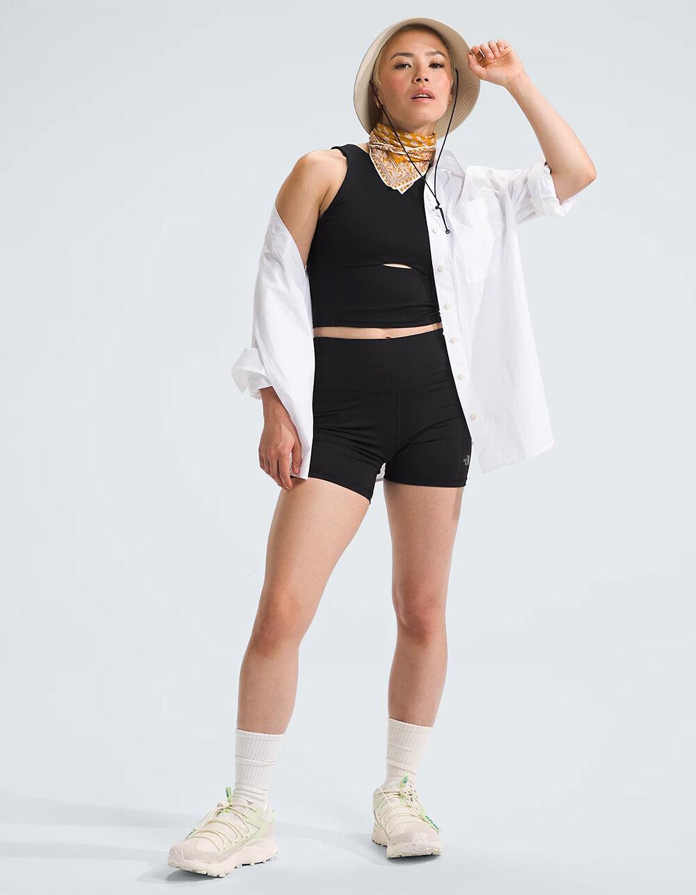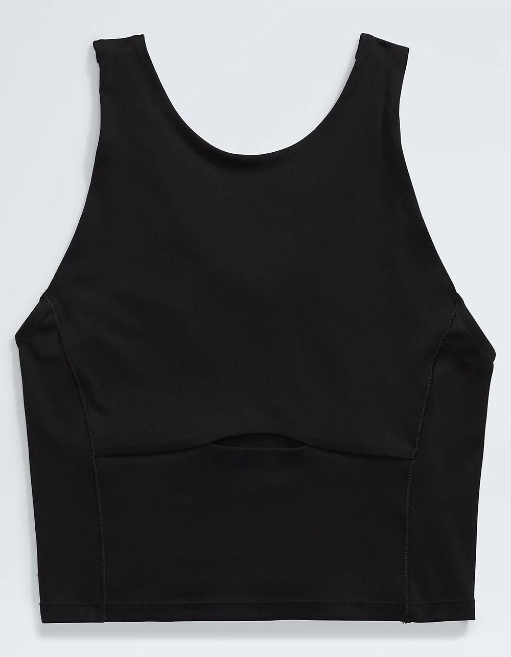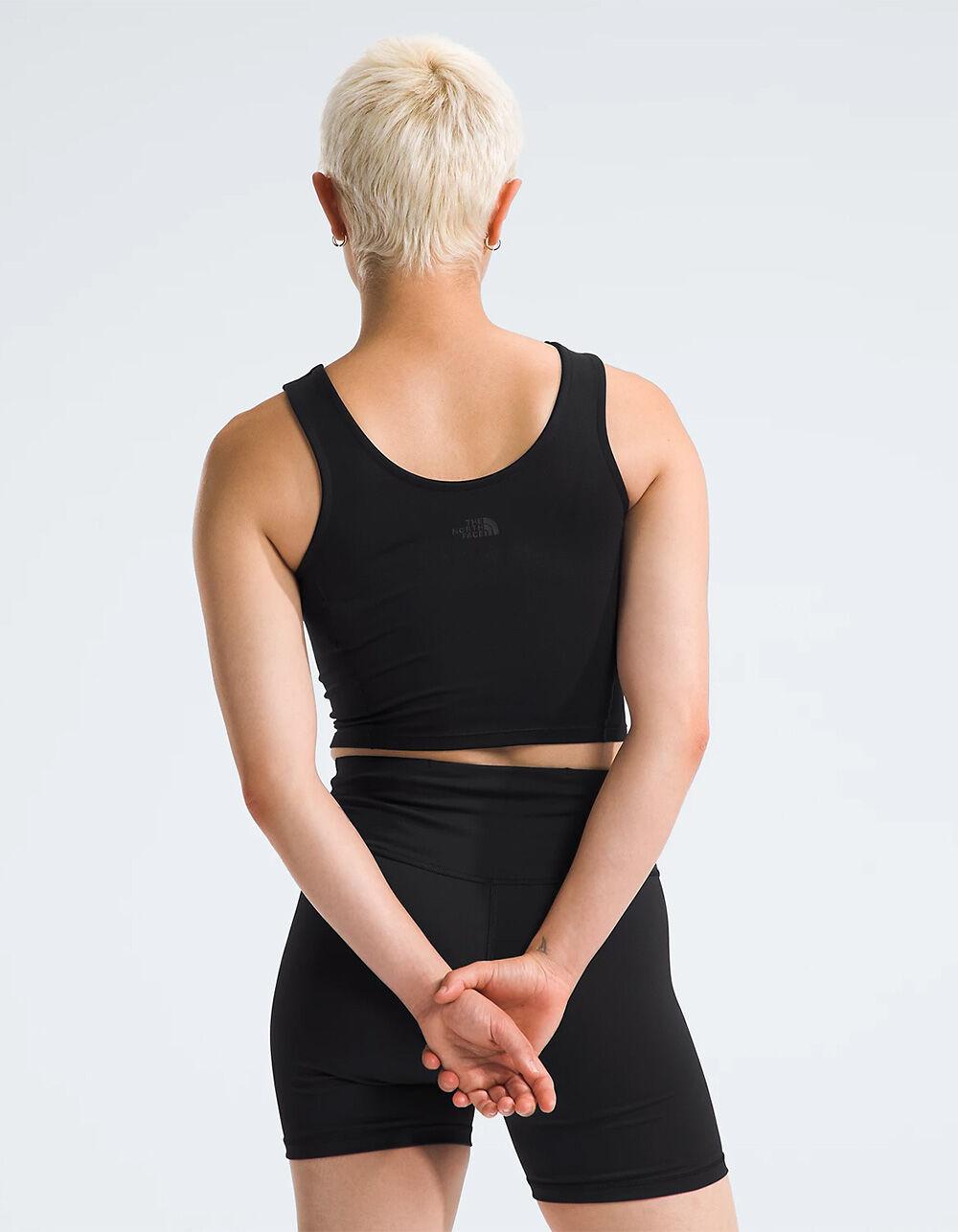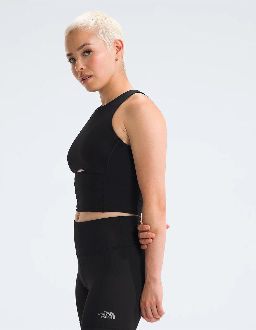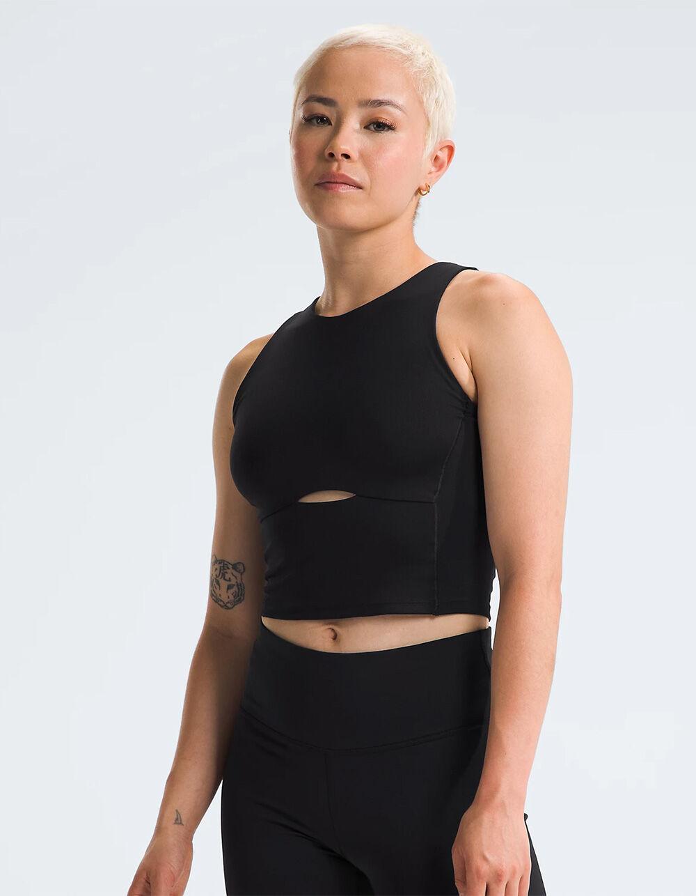 BLACK. The North Face Dune Sky Tanklette. The ultra-soft Women’s Dune Sky Tanklette is so comfortable you won’t want to take it off—and thanks to features like FlashDry™ moisture management and an anti-odor treatment, you won’t have to. Built for mobility, this stretchable next-to-skin layer provides ultimate versatility for full days spent training or out on the trail. Two-ply front panel for coverage. Clean-finished neckline and armholes. Backward-set shoulder seams. Forward-set side seams. Open keyhole at chest. Heat transfer logo on center back. Fitted. Shell: 79% Polyester, 21% Elastane. Lining: 90% Polyester, 10% Elastane. Machine wash. Imported.