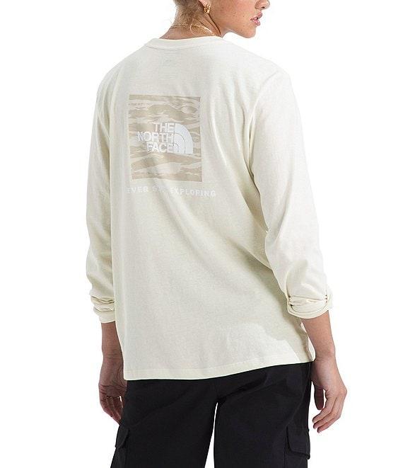 From The North Face, this top features: Knit fabrication Tee silhouette Crew neckline Long sleeves Set-in sleeves Rib on collar, cuffs and hemline Heat transfer logo on chest and graphic on center chest Relaxed fit Straight hemline Pullover construction Approx. 25.5" length Cotton Machine wash Imported. Sizes: XS, S, M, L, XL, XXL, 3XL/Center Back: 25.5 /body: 160 g/m 100% cotton/rib: 240 g/m 100% cotton/Rib on collar, cuffs and hem/Set-in sleeves/Heat transfer logo on left chest and graphic on center chest
