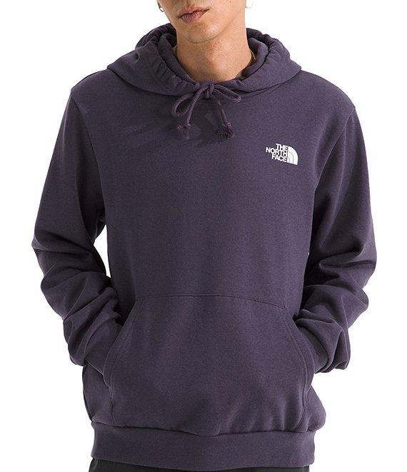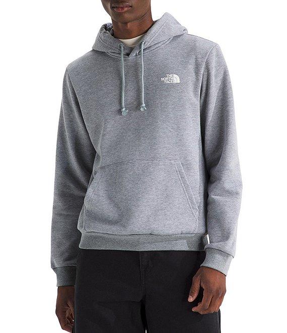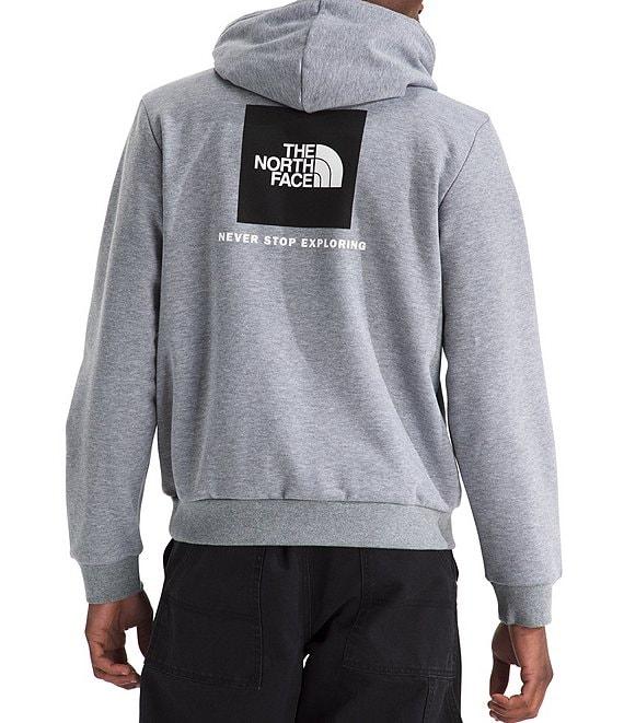 From The North Face, this hoodie features: Attached two-piece hood with drawcord for adjustability Long sleeves Heat-transfer logo on the left chest Square-shaped graphic with "The North Face" logo and icon logo detail and "Never Stop Exploring" verbiage on the back Front kangaroo pocket Ribbed cuffs and hem Pullover construction Regular fit Cotton/polyester; rib of cotton/elastane; hood lining of cotton Machine wash/tumble dry Imported.