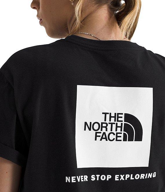 From The North Face, this tee features: Super soft knit fabrication Crew neckline Short sleeves Rib on collar Screen print logo on left chest and box logo graphic on back Standard fit Straight hemline Pullover construction Approx. 24" length Recycled polyester/climate conscious cotton Machine wash Imported. For relaxing days indoors or out, reach for the Women s Evolution Box NSE Short-Sleeve Tee. With Circular Design construction and super-soft fabric made from at least 85% Climate Conscious Cotton, you can feel good about your new favorite go-to./Sizes: XS, S, M, L, XL, XXL, 3XL/solid body: 160 g/m 100% Climate Conscious Cotton/heather body: 160 g/m 85% Climate Conscious Cotton, 15% recycled polyester/solid rib: 240 g/m 100% Climate Conscious Cotton/heather rib: 240 g/m 85% Climate Conscious Cotton, 15% recycled polyester/Regular fit/Circular Design: thoughtfully designed to be disassembled and recycled by us at the end of its life into raw materials for a second generation of products/Solid body fabric made with 100% U.S. cotton from farmers using agricultural practices that help build soil carbon heather body fabric made with 85%/Rib on collar/Screen-printed logo on left chest and box logo graphic on back
