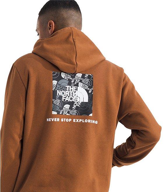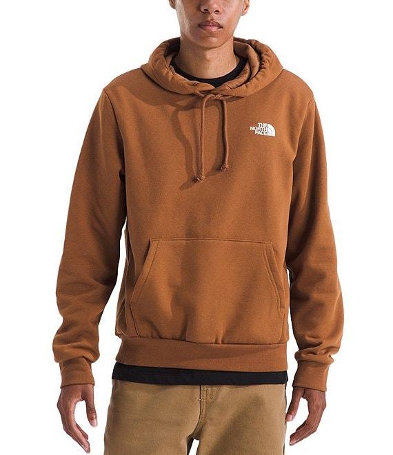 From The North Face, this hoodie features: Regular fit Two-piece hood with a draw cord for adjustability Long sleeves Ribbed cuffs and hem Logo on the left side of chest Graphic print on the back Kangaroo hand pocket Pullover construction Cotton/polyester Machine wash/tumble dry Imported.