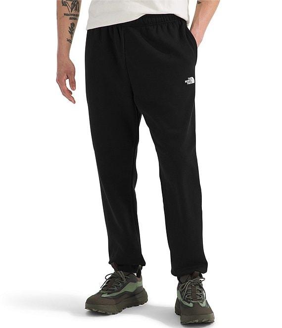 From The North Face, these joggers feature: Drawstring elastic waistband Hand pockets "The North Face" logo and icon logo detail embroidered on left leg Ribbed cuffs on the leg hems Pull-on construction Regular fit Solid color of cotton/polyester; solid pocket of cotton Machine wash/tumble dry Imported.