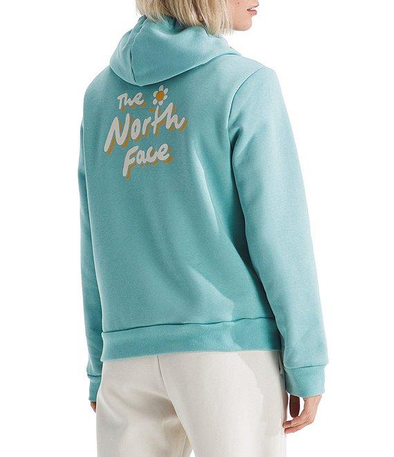 From The North Face, this pullover construction Two piece adjustable drawcord hooded Long sleeves Kangaroo pocket Rib on collar and hemline Various logo and graphic techniques Regular fit Straight hemline Pullover construction Approx. 24.5" length Polyester/cotton/elastane Machine wash Imported.