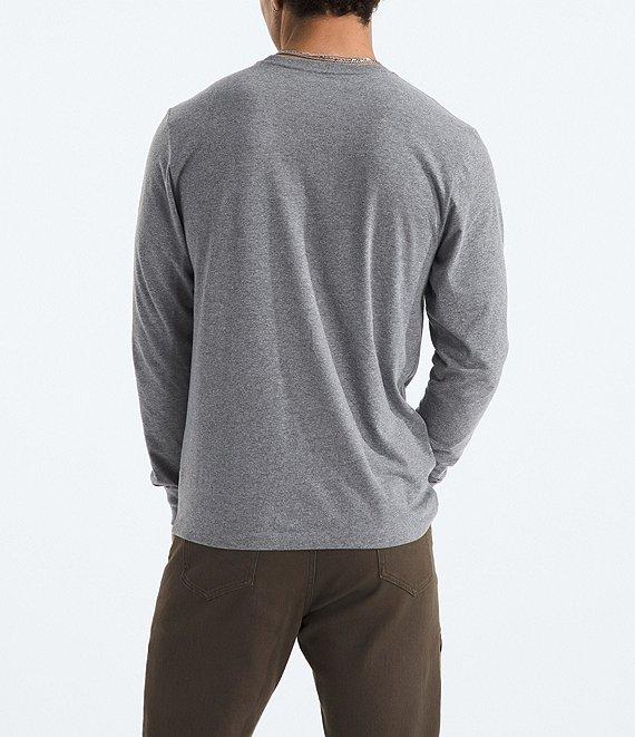 From The North Face, this t-shirt features: Crew neckline Long sleeves "The North Face" logo and icon logo embroidered on the chest Pullover construction Regular fit Heathered color body and rib of cotton/polyester Machine wash/tumble dry Imported.