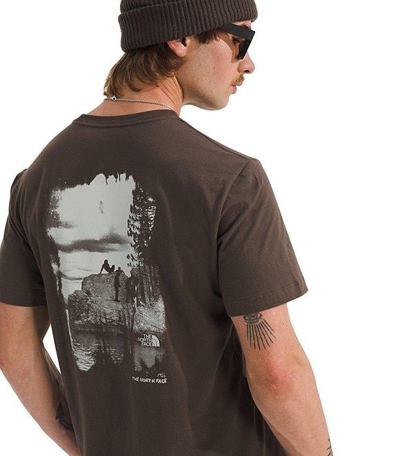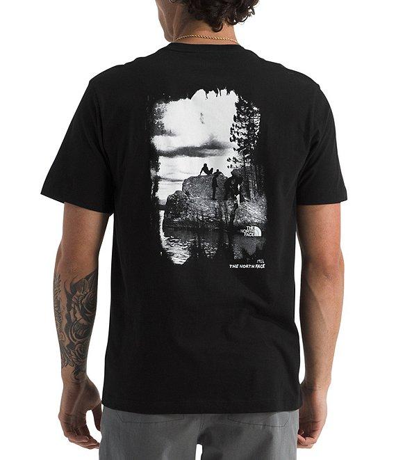 From The North Face, this t-shirt features: Crew neckline Short sleeves "The North Face" logo printed on the front Scenic nature graphic, and "The North Face" logo printed on the back Pullover construction Regular fit Cotton Machine wash/tumble dry Imported.