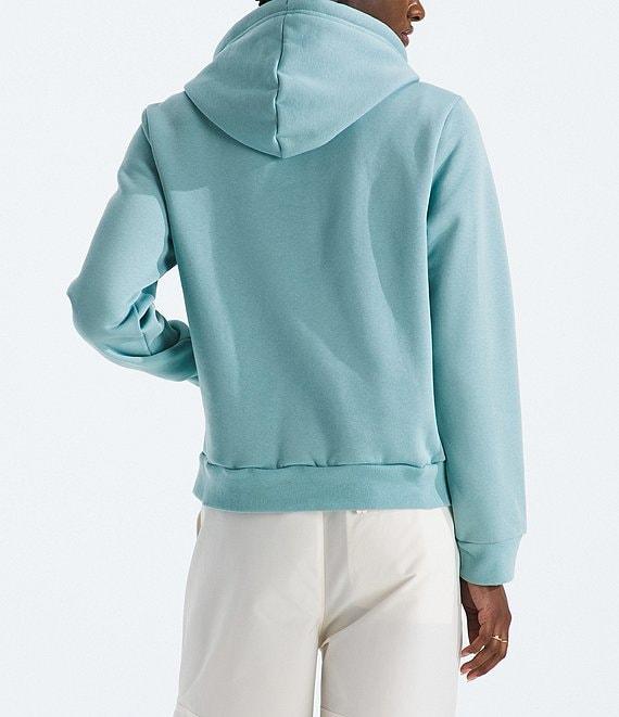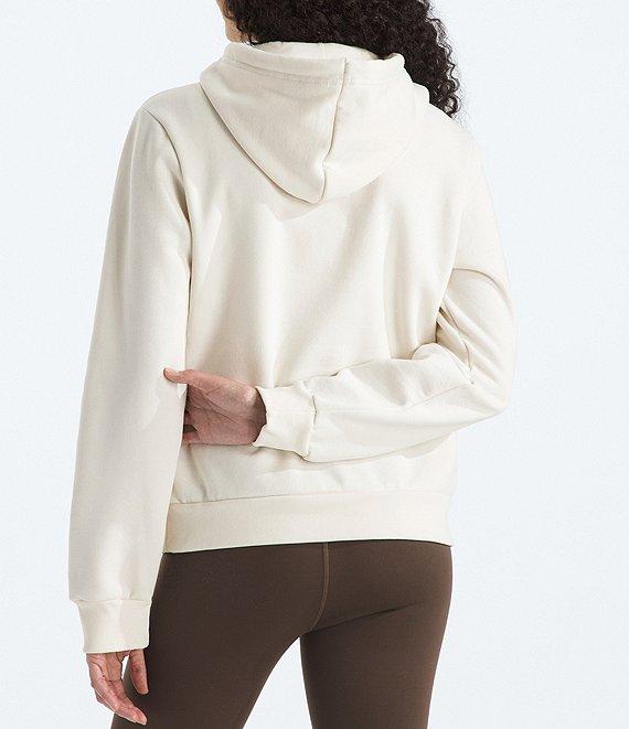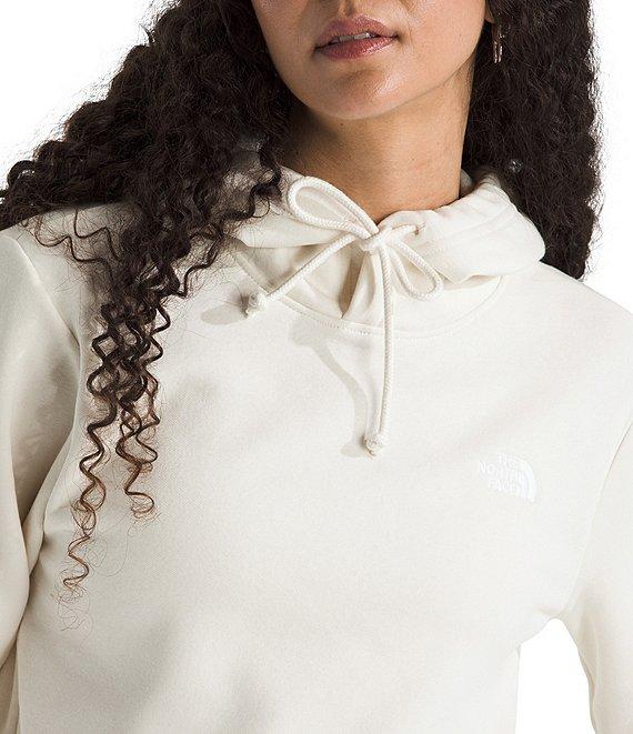 From The North Face, this pullover features: Crew neckline Long sleeves Kangaroo hand pockets Two piece hoodie with drawcord Rib on cuffs and hemline Embroidered logo on left chest Relaxed fit Straight hemline Pullover construction Approx. 27" length Cotton/polyester Machine wash Imported.