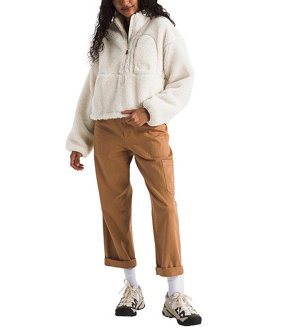 From The North Face, this pullover features: High-pile fleece fabrication Stand collar Long sleeves Elastic-bound cuffs Secure-zip chest pocket Side secure-zip hand pockets Embroidered logo on chest pocket Internal drawcord with cord lock at hemline Exposed center front half zip closure Pullover construction Approx. 20.87" length Recycled polyester/recycled nylon Machine wash/tumble dry Imported.
