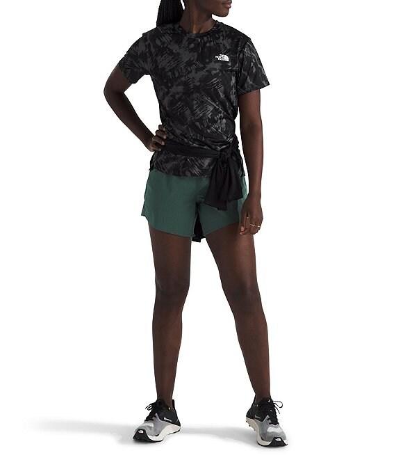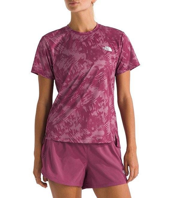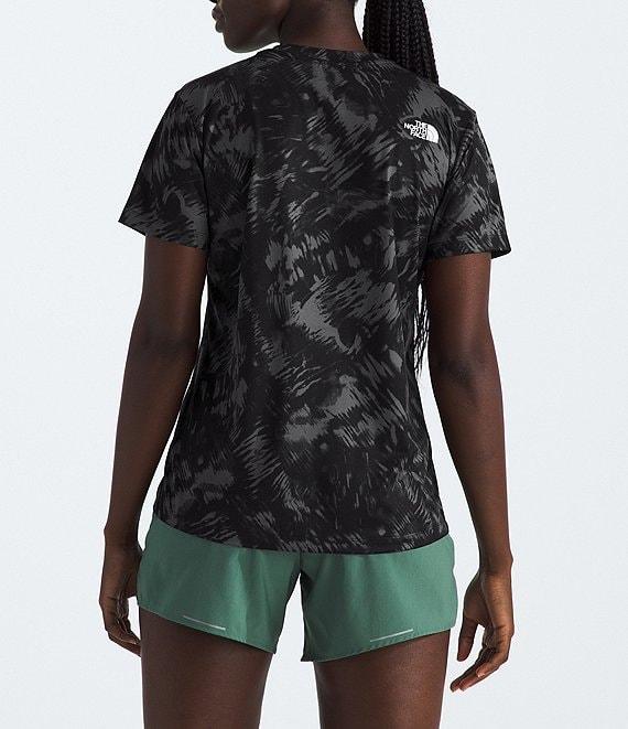 From The North Face, this tee features: Knit pique fabrication Crew neckline Short sleeves Allover print/logo on left chest and back right shoulder Flashdry technology Standard fit Split hemline Pullover construction Approx. 24" length Recycled polyester Machine wash Imported Perfect for the everyday adventurer, the Women s Flex Short-Sleeve Tee is constructed with recycled fabric with FLASHDRY technology to help manage moisture and split-hems at the side for added mobility.