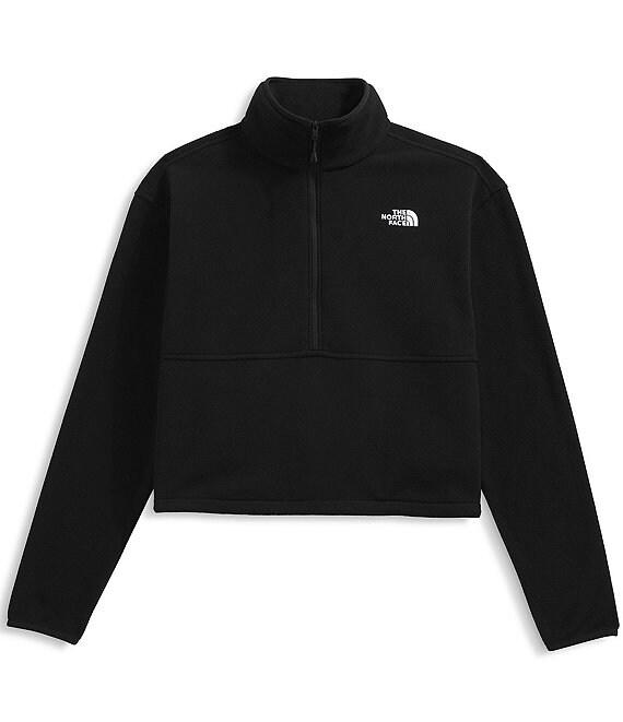 From The North Face, this jacket features: Microfleece fabrication Sweater silhouette Stand collar neckline Long sleeves Reverse coil concealed zip hand pockets Reverse coil center front half zip with cord puller Reinforces mechanical stretch binding on collar, cuffs and hemline Embroidered logo on left chest and back right shoulder Regular fit Cinched hemline Pullover construction Approx. 20" length Recycled polyester Machine wash Imported. The Women's Glacier Fleece 1/2 Zip Short Jacket is a classic that s made with microfleece and is an ideal layering piece to wear with a waterproof shell. It's also part of our Circular Design initiative that helps us reduce waste and give old gear new life./Regular fit/Circular Design: thoughtfully designed to be disassembled and recycled by us at the end of its life into raw materials for a second generation of products/Body fabric made with recycled polyester/Reverse-coil center front half zip with a cord puller/Reverse-coil, concealed-zip hand pockets/Reinforced mechanical stretch binding on collar, cuffs and hem for added comfort and durability/Embroidered logo on left chest and back-right shoulder