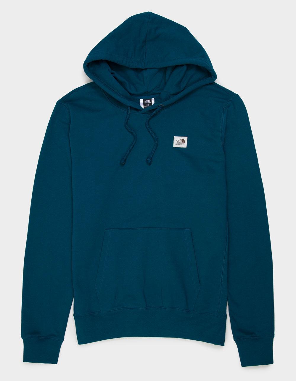 The North Face Heritage Patch Hoodie. Logo patch at left chest. Front pouch pocket. Drawstring hood. Fleece lining. Cuffed long sleeves and hem. 50% Cotton 50% Polyester. Machine wash. Imported.
