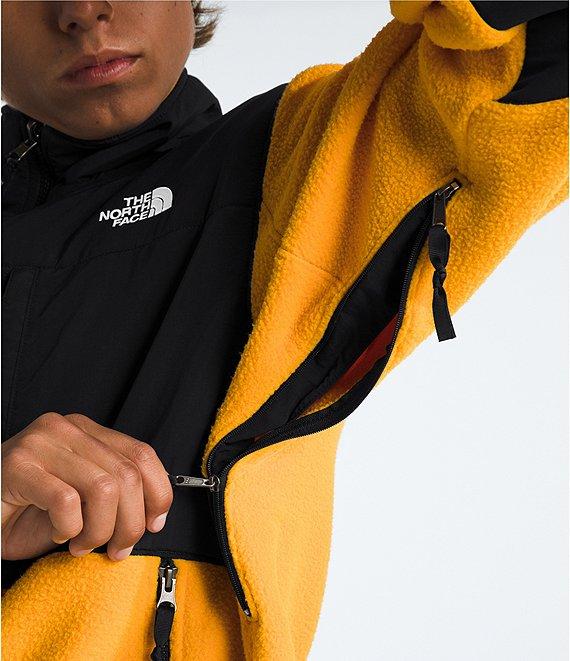 From The North Face, this jacket features: Color block pattern Relaxed fit Woven overlay on the collar, chest, back yoke, and lower-back sleeves for added durability Stand collar Exposed, two-way, VISLON® center-front zip with an internal draft flap Pit-zip venting Two secure-zip chest pockets and hand pockets Elastic-bound cuffs with tabs for snap-in compatibility with the GTX Mountain Jacket Internal drawcord with cord locks at hem for adjustability Embroidered logo on left chest and back-right Body of recycled polyester; overlay of recycled nylon with non-PFC durable water-repellent (non-PFC DWR) finish; overlay of recycled polyester/recycled nylon; pocket lining of recycled polyester Machine wash/tumble dry Imported.