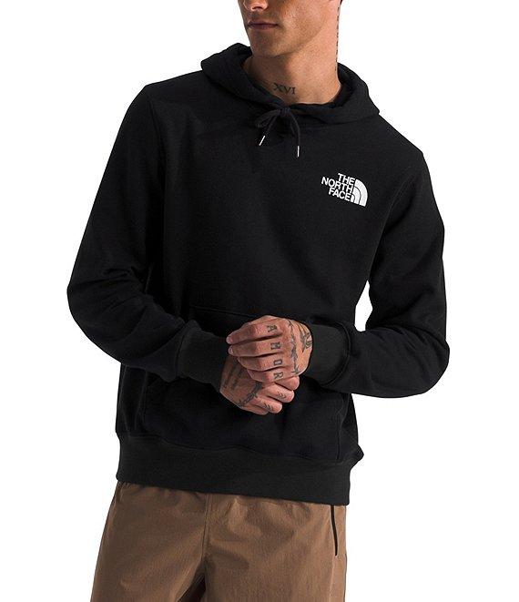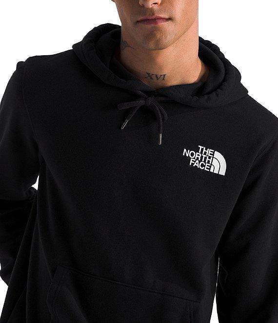 From The North Face, this hoodie features: Adjustable, two-piece hood with a drawcord Set-in sleeves Logo on the left chest and graphic on the back Kangaroo hand pocket Ribbed cuffs and hem Pullover construction Regular fit Solid body of climate-conscious cotton/recycled polyester; solid rib of climate-conscious cotton/elastane Machine wash/tumble dry Imported.