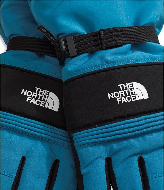 From The North Face, these gloves feature: Color block design Non-PFC DWR finish for added water repellency DRYVENT™ insert helps keep hands dry Back of hand and palm lined with super-soft raschel fleece Gauntlet lining made with wind-resistant WINDWALL™ fabric HEATSEEKER™ synthetic insulation in back of hand, palm and gauntlet is made with hollow-core fibers for added warmth, performance and durability Faux-leather palm overlay for added durability Progressive Precurve is the accumulative increase of curvature from index finger to pinkie, creating a more natural shape for your fingers as they relax in the glove Etip™ functionality works with touchscreen devices Nose wipe Zigzag stitch with elastic at wrist for a better fit Webbing strap with a buckle on back of hand and shock cord with a cord lock at gauntlet hem for an adjustable fit Webbing cuff pull Wrist leash helps prevent gloves from dropping and a pairing clip that helps keep them together when you're not wearing them Matte polyurethane (PU) logo Shell of recycled polyester with non-PFC durable water-repellent (non-PFC DWR) finish; palm overlay of polyester/polyurethane (PU) faux leather; thumb and index finger Etip™ compatible; back-of-hand and palm lining of recycled polyester raschel fleece; gauntlet lining of WINDWALL™ recycled polyester; back-of-hand insulation of HEATSEEKER™ post-consumer recycled polyester; palm insulation of HEATSEEKER™ post-consumer recycled polyester; gauntlet insulation of HEATSEEKER™ post-consumer recycled polyester; insert DRYVENT™ Machine wash/tumble dry Imported.