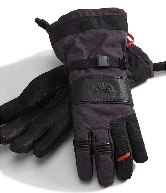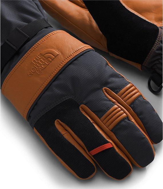 From The North Face, these mitts feature: Non-PFC DWR finish for added water repellency Durably waterproof GORE-TEX insert Super-soft fleece hand lining HEATSEEKER™ synthetic insulation in the back of the hand and palm is made with hollow-core fibers for added warmth, performance, and durability Goat leather on back-of-hand panel, knuckle accordion, and palm for added protection Textured knit with a non-PFC DWR finish on knuckles Thermo Gauntlet™ construction for a cozy fit and enhanced comfort Progressive Precurve is the cumulative increase of curvature from index finger to pinkie, creating a more natural shape for your fingers as they relax in the mitt Nose wipe Carabiner loop at back of pinkie Zigzag stitch with elastic at wrist for a better fit Webbing strap with a buckle on the back of the hand and shockcord with a cord lock at the gauntlet hem for an adjustable fit Cuff pull Wrist leash helps prevent mitts from dropping, and the shockcord-loop pairing clip helps keep them together when you're not wearing them Embossed logo Back of hand and gauntlet of recycled polyester with non-PFC durable water-repellent (non-PFC DWR) finish; back-of-hand panel, knuckle accordion, and palm goat leather; back of index and middle finger of recycled polyester ripstop; back of ring finger and pinkie of textured knit with non-PFC DWR finish; hand lining of recycled polyester fleece; gauntlet lining of recycled polyester with non-PFC DWR finish; back-of-hand insulation of HEATSEEKER™ post-consumer recycled polyester; palm insulation of HEATSEEKER™ 70% post-consumer recycled polyester; insert of GORE-TEX Machine wash/tumble dry Imported.