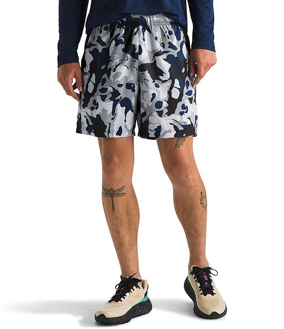 From The North Face, these shorts feature: Allover print Regular fit Encased elastic waistband with adjustable drawcord Open hand pockets Logo on left thigh 7” inseam Pull-on construction FlashDry™ materials offer enhanced moisture management to help keep you comfortable Recycled polyester woven with FlashDry™ Machine wash/tumble dry Imported.