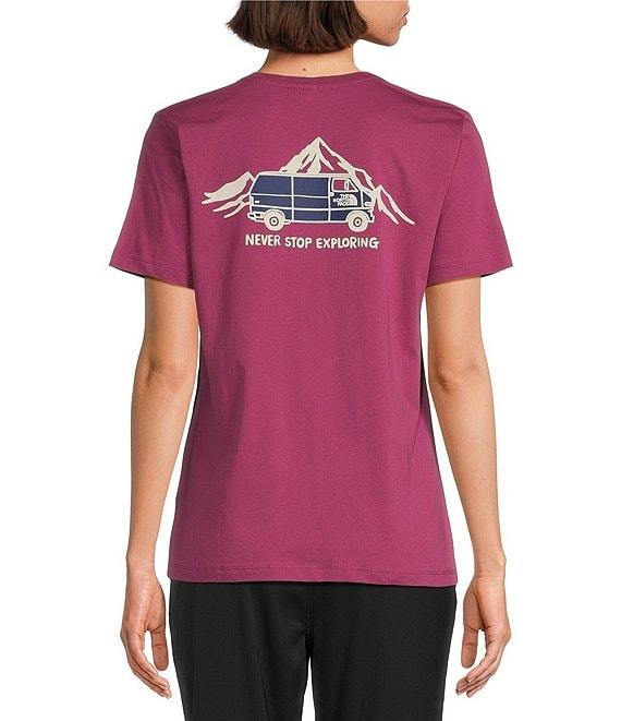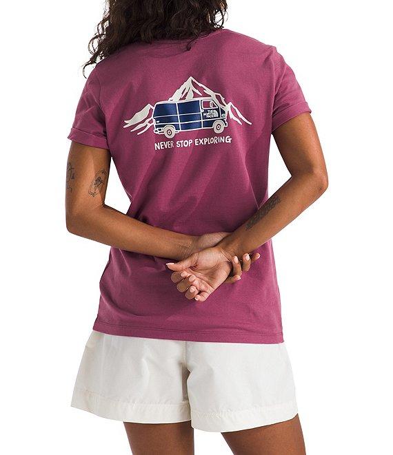 From The North Face, this tee features: Jersey knit fabrication Crew neckline Short sleeves Outdoor graphic print Standard fit Straight hemline Pullover construction Approx. 24" length Cotton Machine wash Imported You ll never want to stop exploring in the Women s Short-Sleeve Outdoor Graphic Tee. Its classic fit is made with cotton jersey knit and is puff-printed with an outdoor scene on the back that s sure to inspire every explorer.