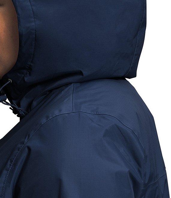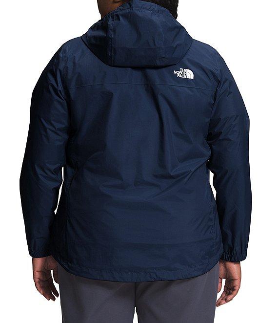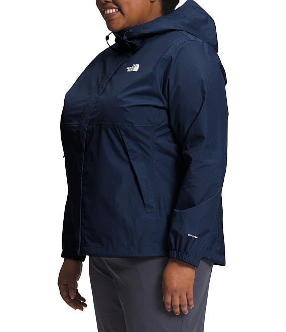 From The North Face Plus, this jacket features: Standard fit Stand collar neckline Attached, three-piece hood with a drawcord and cord locks for adjustability Waterproof, breathable, seam-sealed DryVent™ 2L shell with a non-PFC DWR finish helps keep you dry Windproof fabric Alpine-style design with secure-zip hand pockets Stormflap with a hook-and-loop closure covers the center front zip Elastic-bound cuffs Internal drawcord with a cord lock at hem for adjustability Drop-tail hem Heat transfer logo on left chest and back-right shoulder full front zip Approx. 29" length Shell: recycled nylon Lining: recycled polyester mesh Machine wash Imported.