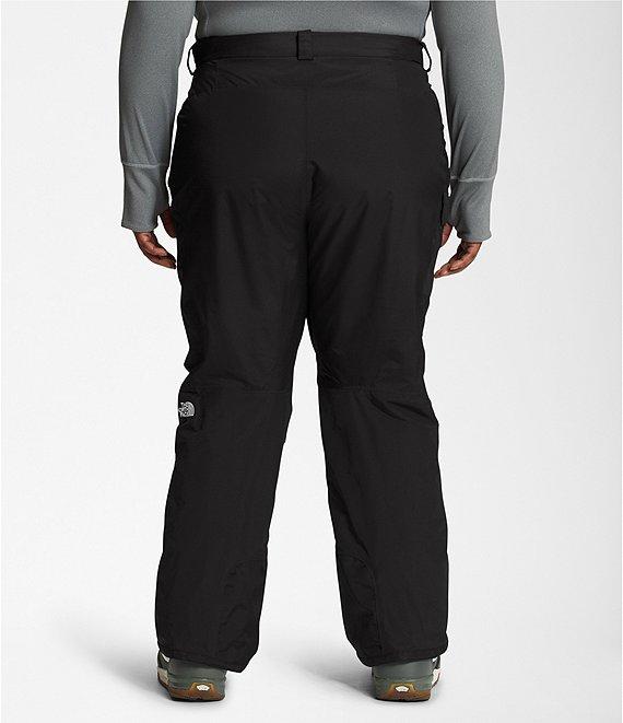 From The North Face Plus, these pants features: Cargo silhouette High rise Secure zip hand pockets Cargo pocket with a hook-and-loop closure on right thigh Articulated knees for increased mobility Chimney Venting System Mesh lined inner thigh thigh vents Mesh gaiter panels for temperature regulation Reinforced kickpatches and hemline Stretch vent gaiters with gripper elastic Waterproof, breathable seam sealed DryVent 2L Shell with Non-PFC DWR finish helps keep you dry Heatseeker Eco Synthetic insulation Waistband with belt loops and adjustable tabs Standard fit Fully lined Zip-fly with a snap tab closure Approx. 30" short inseam; 32" regular inseam; 34" long inseam Recycled nylon Machine wash Imported
