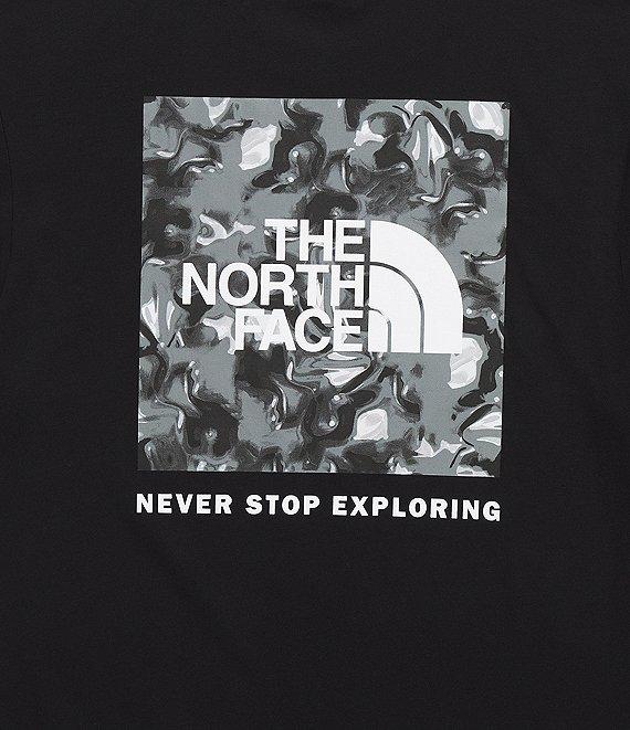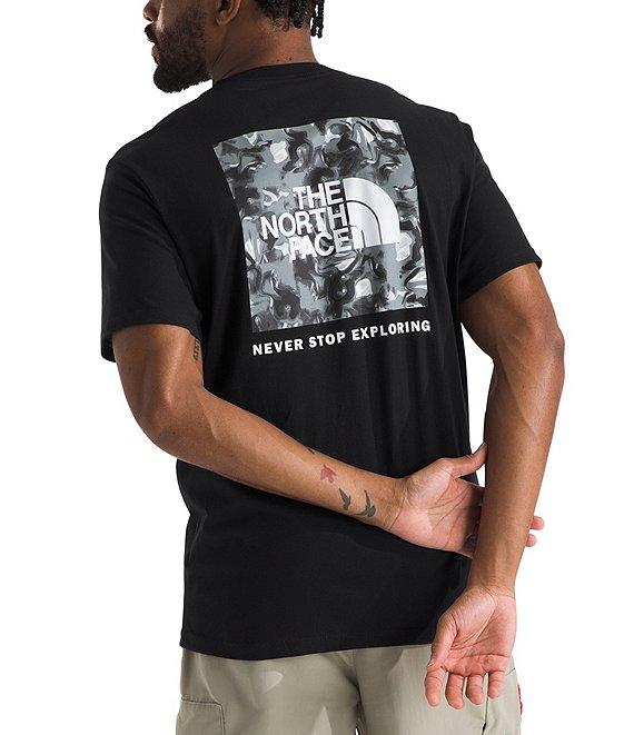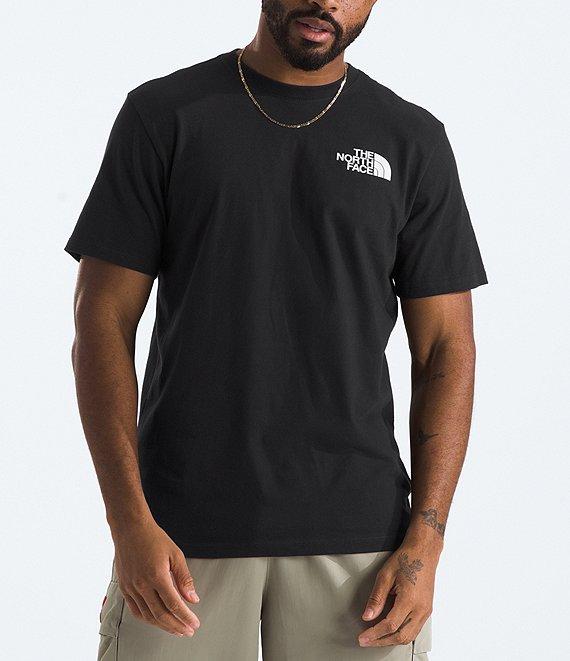 From The North Face, this t-shirt features:Standard fitRib collarShort sleevesNo-hand, water-based, screen-printed logo on the left chestBox logo graphic on the backPullover constructionSelf and rib or climate-conscious cottonMachine wash/tumble dryImported.