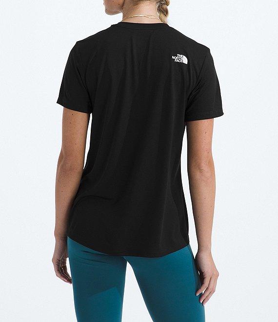 From The North Face, this top features: Knit pique with FLASHDRY fabrication Tee silhouette Crew neckline Short sleeves Forward set side seam Logo on left chest and back right shoulder Relaxed fit Split hemline Pullover construction Approx. 25" length Recycled polyester Machine wash Imported. Sizes: XS, S, M, L, XL/solid: 75D 127 g/m 100% recycled polyester knit piqu with FlashDry /heather: 75D 125 g/m 87% recycled polyester, 13% polyester knit piqu with FlashDry /Regular fit/FlashDry materials offer enhanced moisture management to help keep you comfortable/Solid body fabric made with 100% recycled polyester heather body fabric made with 87% recycled polyester/Forward-set side seams/Split hem at side seams for mobility/All-over print/Logo on left chest and back-right shoulder