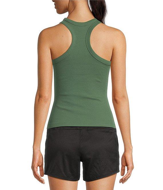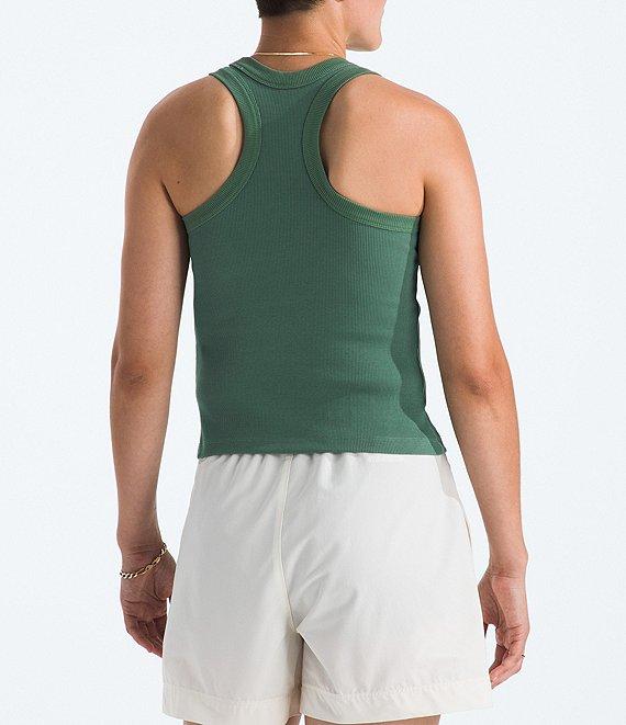From The North Face, this tank features: Stretch rib knit fabrication High neckline Sleeveless Racerback Slim fit Logo patch on center chest Straight hemline Pullover construction Cotton/elastane Machine wash Imported Designed to move with you, the Women s Slim Rib Tank is a high neck, racerback style tank made with cotton for breathability and elastane for stretch.
