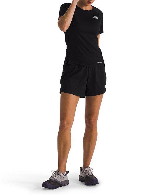 From The North Face, this tee features:Crew necklineRaglan sleevesUnderarm gussetsLIGHTRANGE technologyFLASHDRY materialAnti-odor technologyUPF protectionReflective heat transfer logo on left chest and back right shoulderReflective bar on lower backSplit hemlinePullover constructionApprox. 22.125" lengthMachine washImported.For early morning starts, after dark finishes and every route in between, the Women s Sunriser Short-Sleeve is a moisture-managing trail running layer made for peak performance and comfort. The mobility-focused design features raglan sleeves and underarm gussets for unrestricted range of motion. Constructed using FLASHDRY fabrics, anti-odor properties and LIGHTRANGE technology for sun-ready coverage, you can hit your stride before hitting the town.
