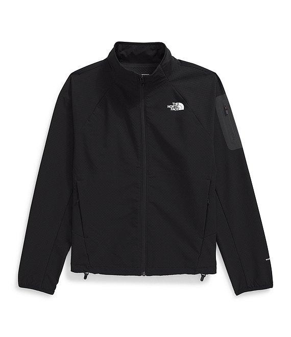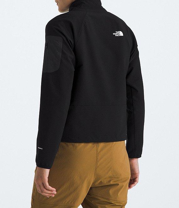From The North Face Plus, this jacket features: WINDWALL fabrication Windbreaker silhouette Stand collar neckline Long sleeves with elasticated cuffs Secure zip hand pocket Bonded reverse coil zip sleeve pocket with a closed end zipper Mesh pocket bag for breathability Wrap around back panel for comfort under hip belt Sean reinforcement tape at neck seam Heat transfer logo on left chest and back right shoulder Regular fit Fully lined Straight hemline Zip front closure Recycled polyester/fleece Machine wash Imported.