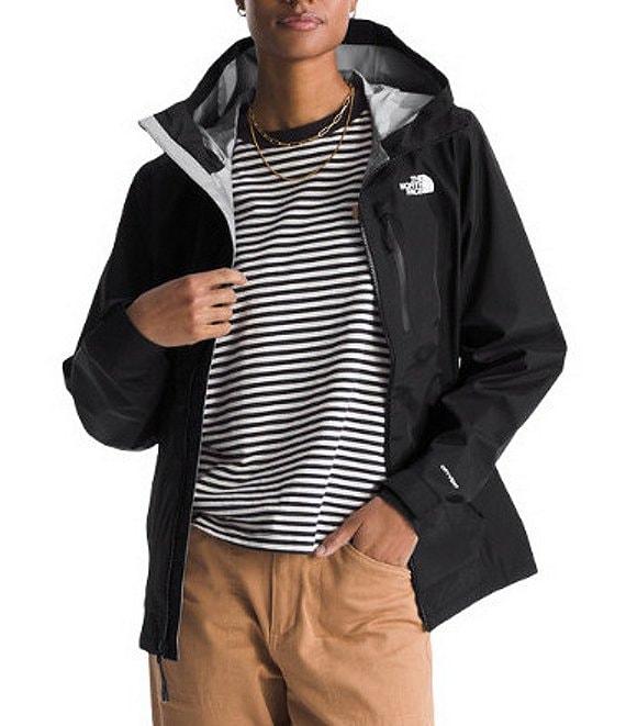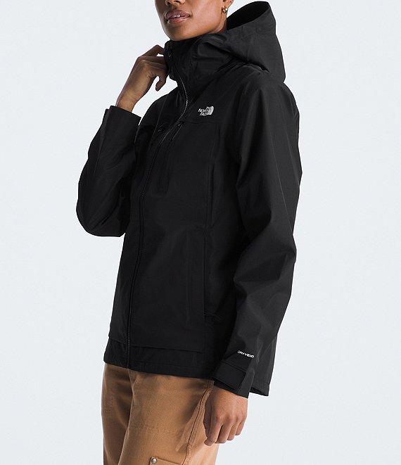 From The North Face, this jacket features: Standard fit Waterproof, breathable, seam-sealed DryVent 3L shell with a non-PFC DWR finish helps keep you dry Attached, adjustable, three-piece hood with a bonded brim and a cinch-cord and cord lock on back Vertical, secure-zip chest pocket Covered, bellowed, secure-zip hand pockets Adjustable hook-and-loop cuff tabs Internal cinch-cord with a cord lock at hem for adjustability Heat transfer logo on left chest and back-right shoulder Exposed, water-repellent, VISLON center front zip Approx. 28" length Nylon Machine wash/line dry Imported.