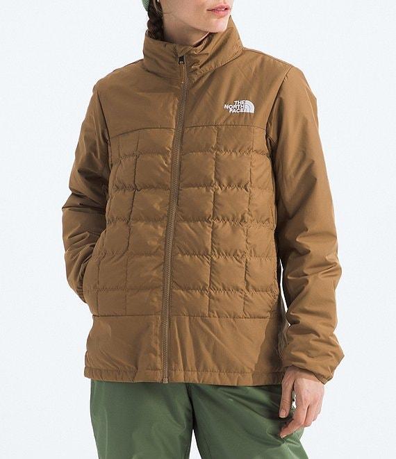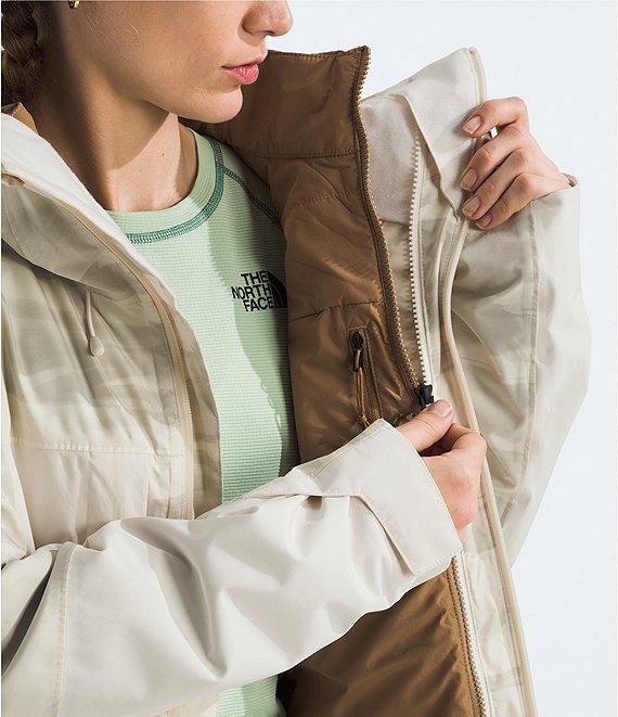 From The North Face, this jacket features: Inner jacket silhouette Stand collar neckline Attached adjustable helmet compatible hood with a hidden cord lock adjustable system Long sleeves Cover secure zip hand pockets Internal secure zip chest pocket Drawcord ends exit into hand pocket Adjustable hook and loop cuffs tabs Internal drawcord with cord lock at hemline Ticket attachment loop on front right hemline THERMOBALL insulated for warmth even when it gets wet Snap down powder skirt with gripper elastic HEATSEEKER synthetic insulation in collar, yoke and sleeves is made with hollow fiber for added warmth Non-PFC DWR finish helps keep you dry Waterproof Regular fit Straight hemline Center front zip closure Recycled polyester Machine wash Imported. A versatile layering piece for skiing and snowboarding, the waterproof Women's THERMOBALL Snow Triclimate Jacket is built to deliver what you need to have a great day on the mountain. The inner jacket is stylish enough to be worn on its own and has THERMOBALL insulation for warmth even when it gets wet./Waterproof, breathable, seam-sealed DRYVENT 2L shell with a non-PFC DWR finish helps keep you dry/Body fabric and lining made with recycled polyester/Attached, adjustable, helmet-compatible hood with a hidden cord-lock adjustment system/Exposed, #5 YKK AquaGuard center front zip/Covered, secure-zip chest pocket with internal cord routing/Covered, secure-zip hand pockets/Secure-zip wrist pocket with a goggle wipe/Large, internal mesh drop-in pocket/Underarm venting for temperature regulation/Adjustable hook-and-loop cuff tabs/Internal drawcord with cord locks at hem for adjustability/Drawcord ends exit into hand pockets/Ticket-attachment loop on front-right hem/Snap-down powder skirt with gripper elastic/ Inner Jacket Regular fit/Body fabric made with recycled polyester/THERMOBALL insulation in body helps keep you warm even when wet/HEATSEEKER synthetic insulation in collar, yoke and sleeves is made with hollow-core fibers for added warmth, performance and durability