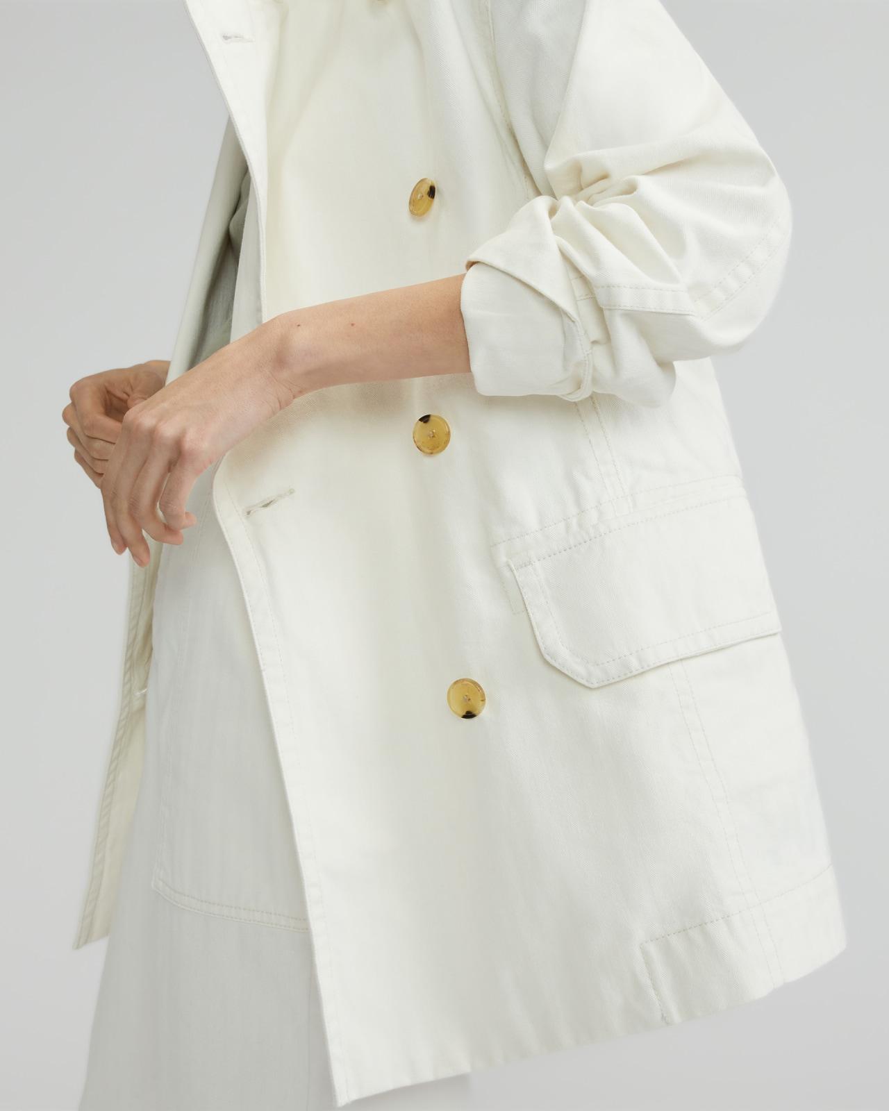 Stand out in herringbone. Light on the body heavy on the statementfeaturing a relaxed fit The Organic Cotton Herringbone Jacket is made of non-stretch 100% organic cotton twill has a double breasted button closure utility twin needle topstitching with welt and flap front pockets. Complete the look with the matching Organic Cotton Herringbone Pant or Organic Cotton Herringbone Dress. Organic cotton uses crop rotation cover crops and organic fertilizers instead of toxic chemical fertilizers or pesticideswhich means cleaner water lower water usage lower pesticide use healthier soil and a safer working environment for cotton farmers compared to conventional cotton. Womens Organic Cotton Herringbone Jacket by Everlane in Bone White, Size XS