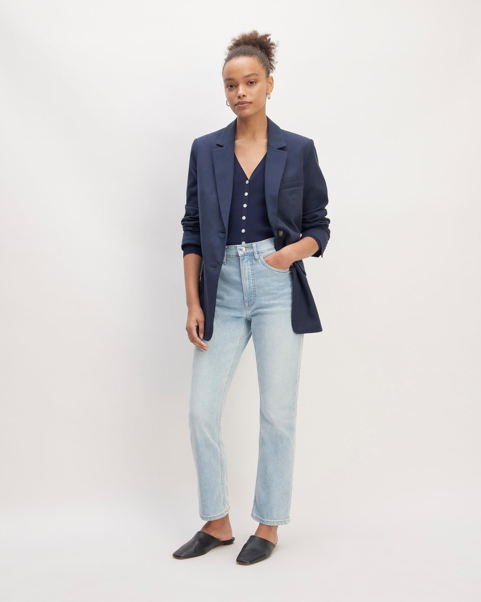 *This jean is made of organic cotton and Roica® V550 yarn—i.e., the first stretch yarn worldwide that isn’t made with harmful chemicals. This innovative fabric, along with the use of microplastic-free dyes and recycled trim, has allowed us to be one of the first companies to make denim that doesn’t dirty the planet. Learn more here.