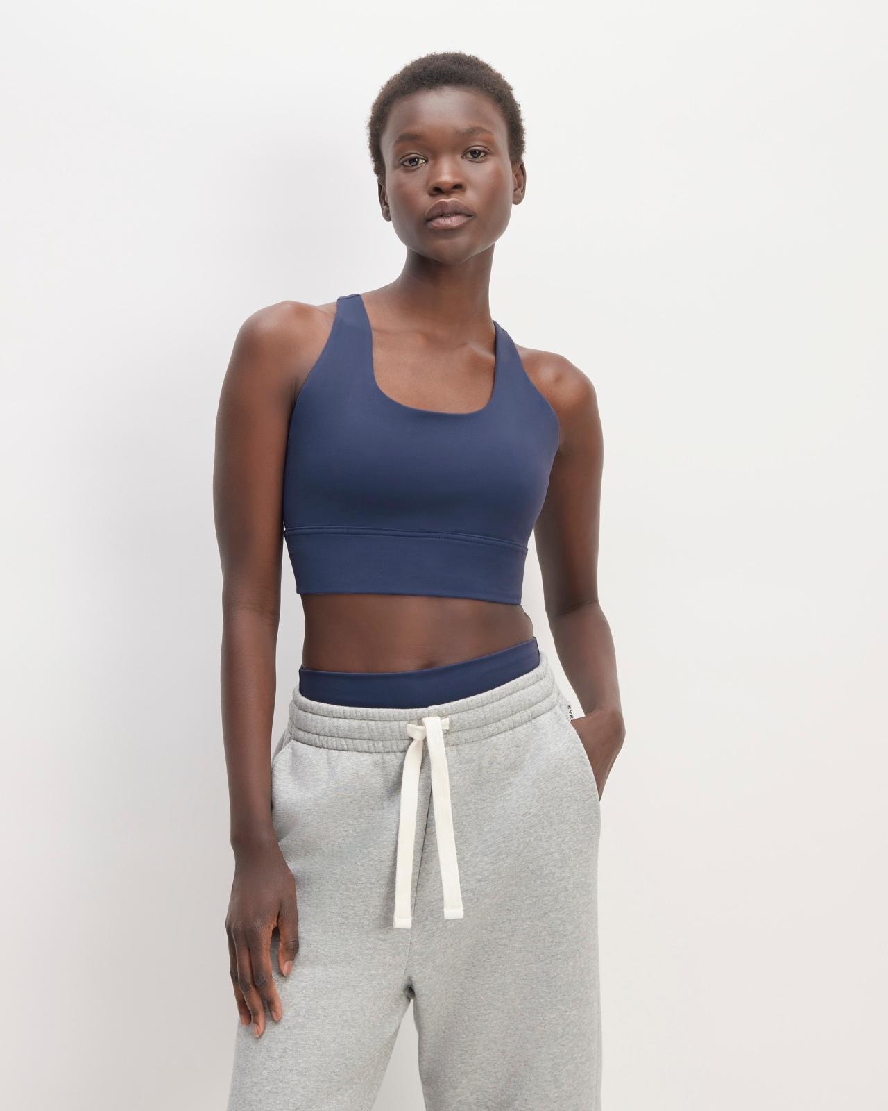 The everyday bra. Made with GRS-certified recycled polyester, the Perform Longline Bra is our softest bra yet. Featuring a scoop-neck and racerback, removable cups, and double-layered lining for added comfort (and support). With lightweight compression and technical sweat-wicking properties, this bra has a longer band that hits just above the waist for extra coverage.