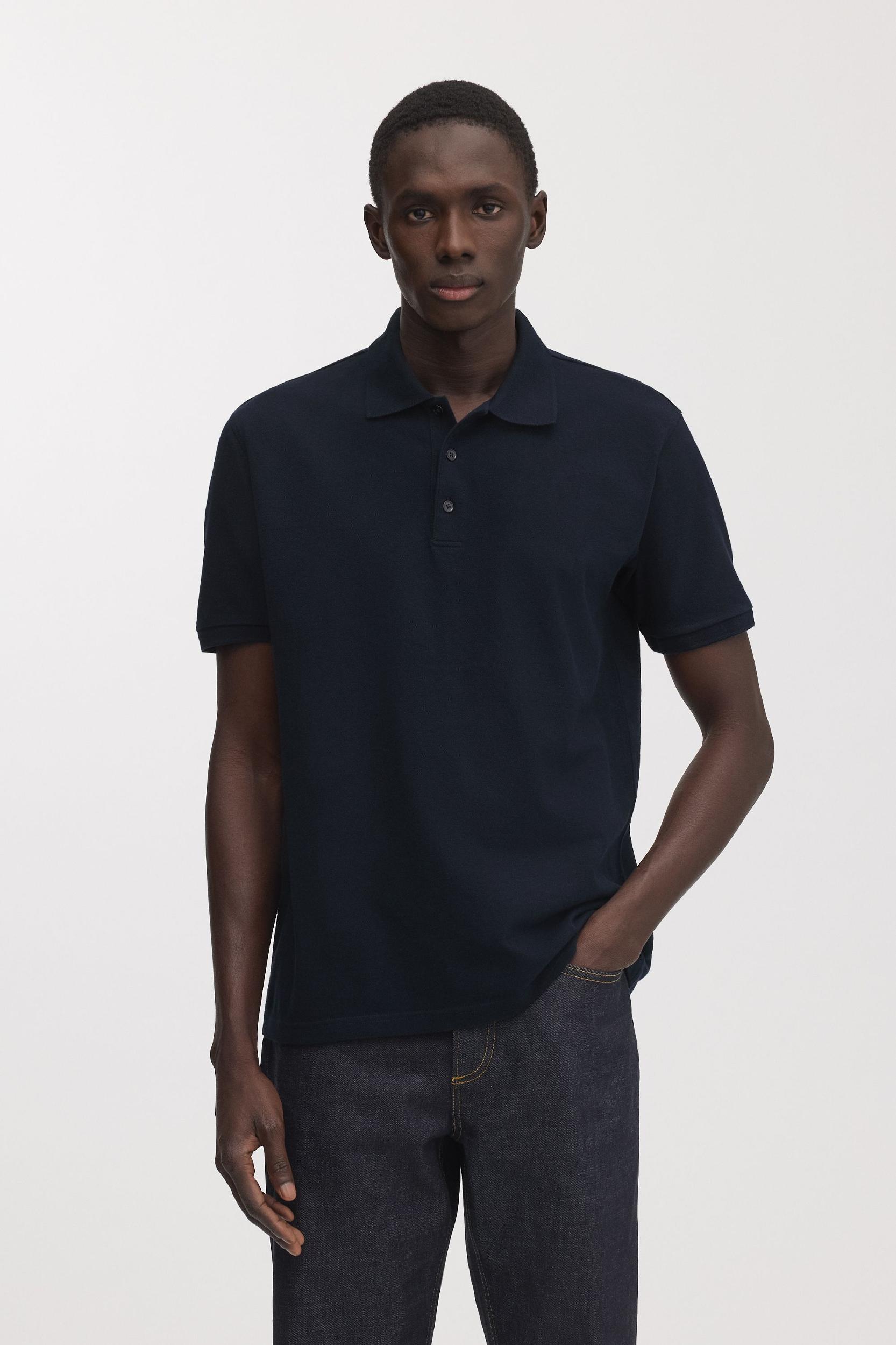 The Pique Polo in Dark Navy. A minimalist pique polo shirt made from premium quality 100% organic Egyptian cotton, available in long, regular and short