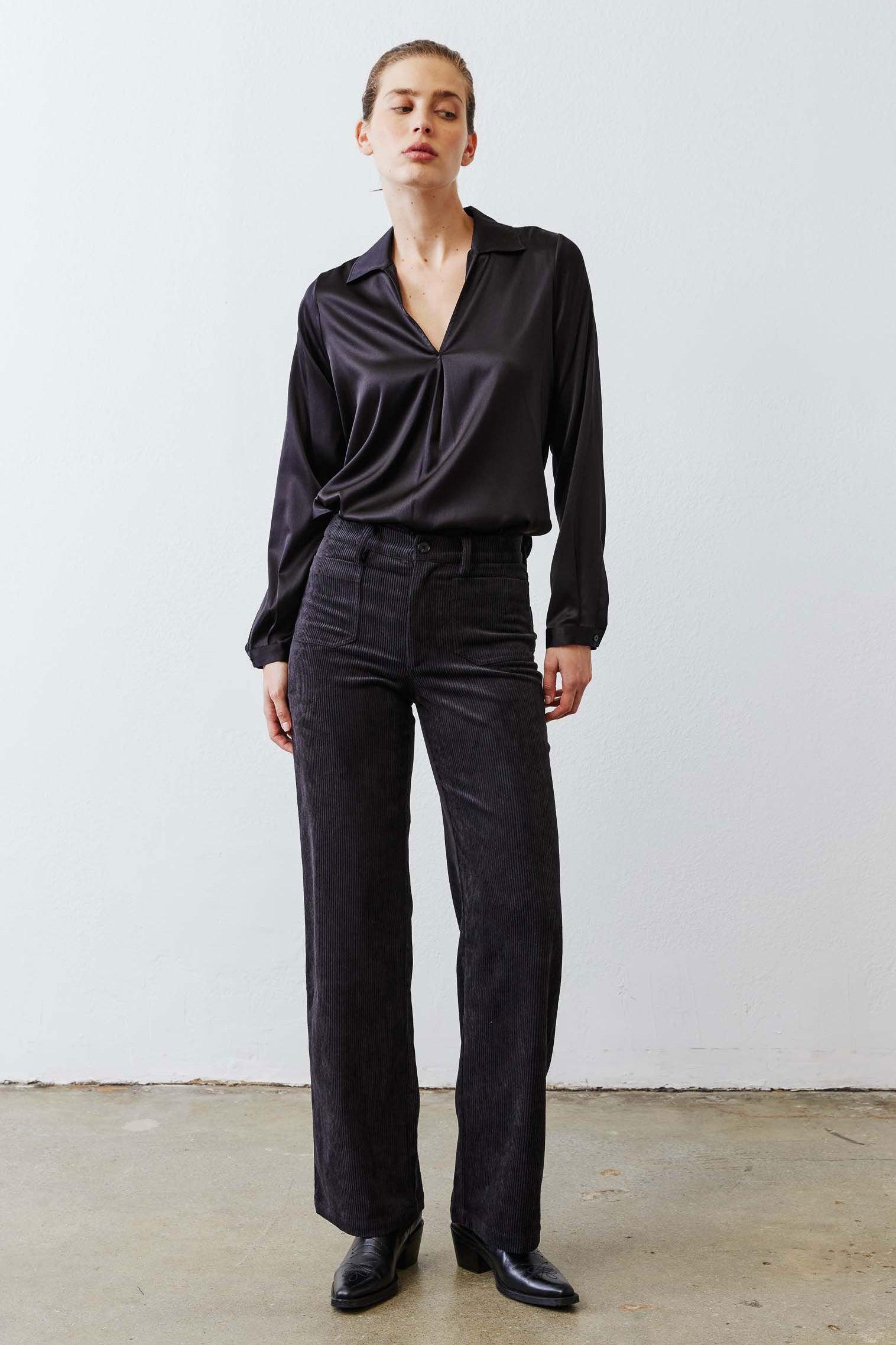 An effortless popover blouse in fluid washable silk with a relaxed drape. Designed with a split neckline and long sleeves for timeless polish.