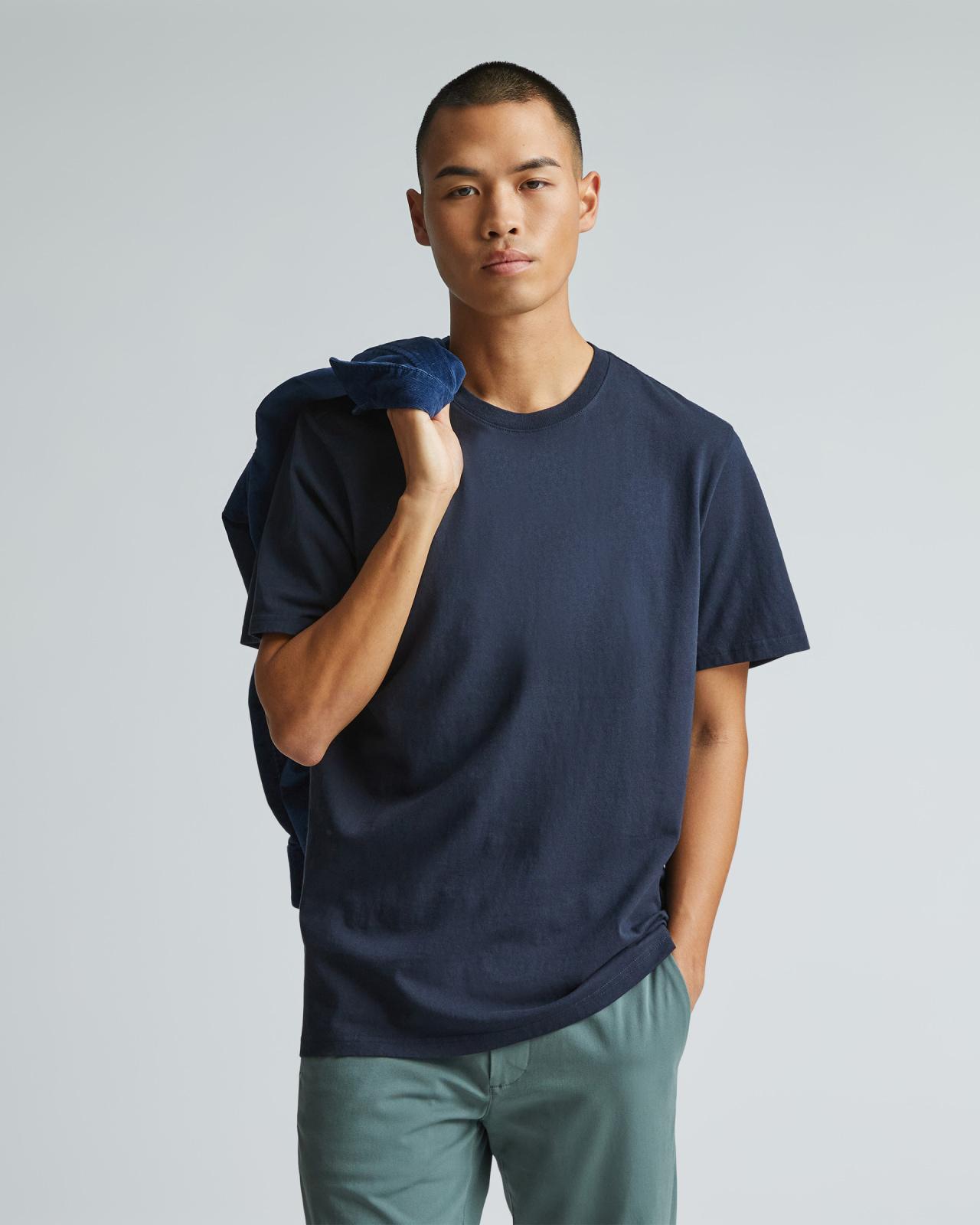 We made our Premium-Weight tees to last starting with a 6.2 oz cotton in a dense durable knit with a dry feel that will get softer over years of wear. Youll feel the difference every time you pull it on. Mens Premium-Weight Crew Neck | Uniform T-Shirt by Everlane in Deep Navy, Size XXL