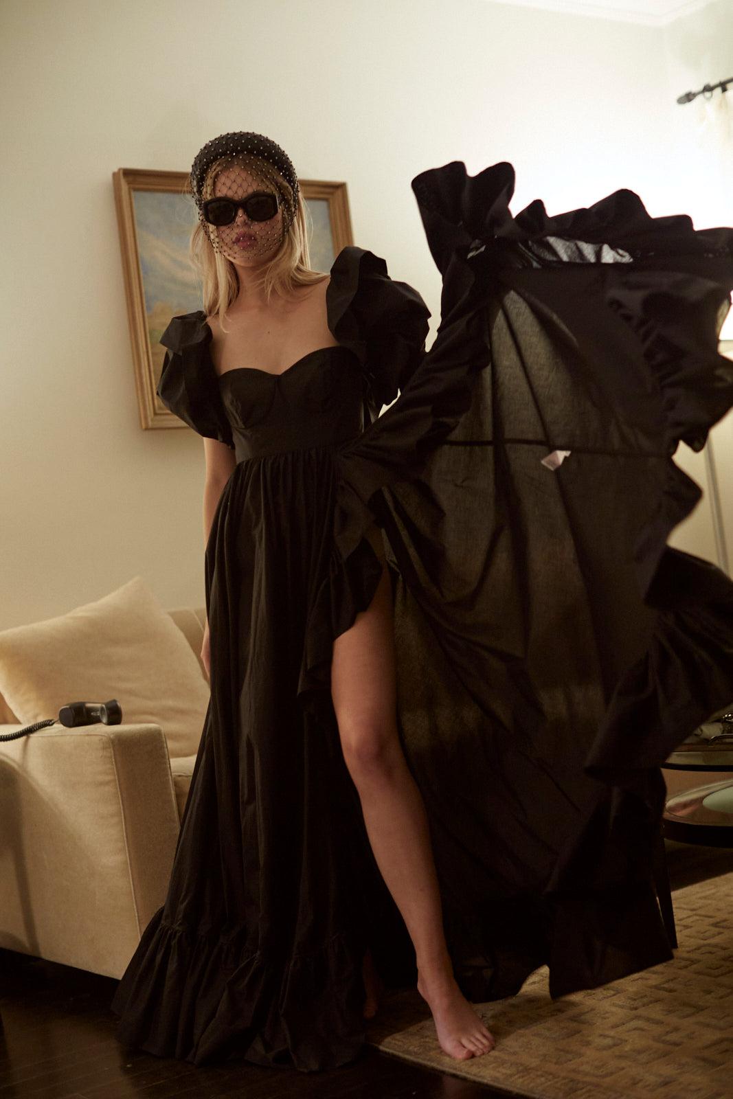 The in Bloom Gown without the train in 100% cotton! You are the drama. At least you will be when you show everyone up by wearing this nostalgic piece of heaven. The skirt features a giant ruffled slit, while shoulder ruffles accentuate the sleeves, and underwire cups accentuate the silhouette. Hook and eye closure for slit adjustability. Fit Notes: Base on your body measurements to buy. For this particular style, it is important to buy based on your waist and across your bust. Riley is 5’7.5” and wearing a size XXS in Selkie. Her measurements are 32” bust, 25” waist, 34” hip. For more specifics, please text our help line. Fabric: 100% Paper Cotton Care: Gently hand wash cold, lay flat to dry or dry clean. Designed and fit in LA, Made in partnership with our reputable and expert production team in Jianying, China. Our products are made with the utmost in quality by some of the best craftsman in the industry. Learn more about our team and see our facilities!