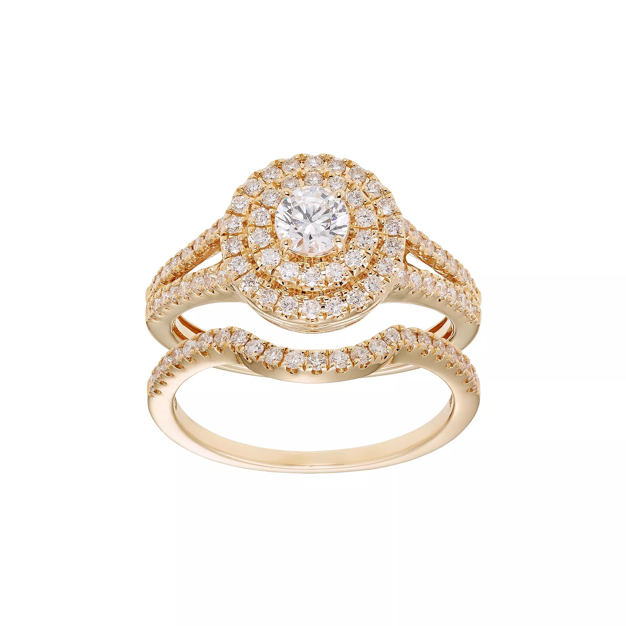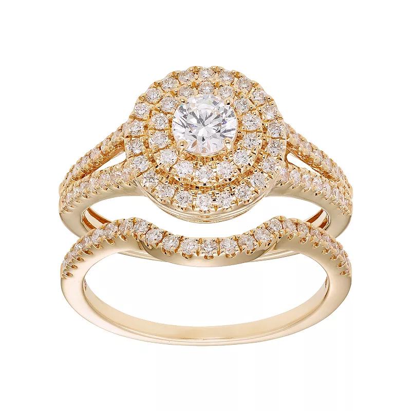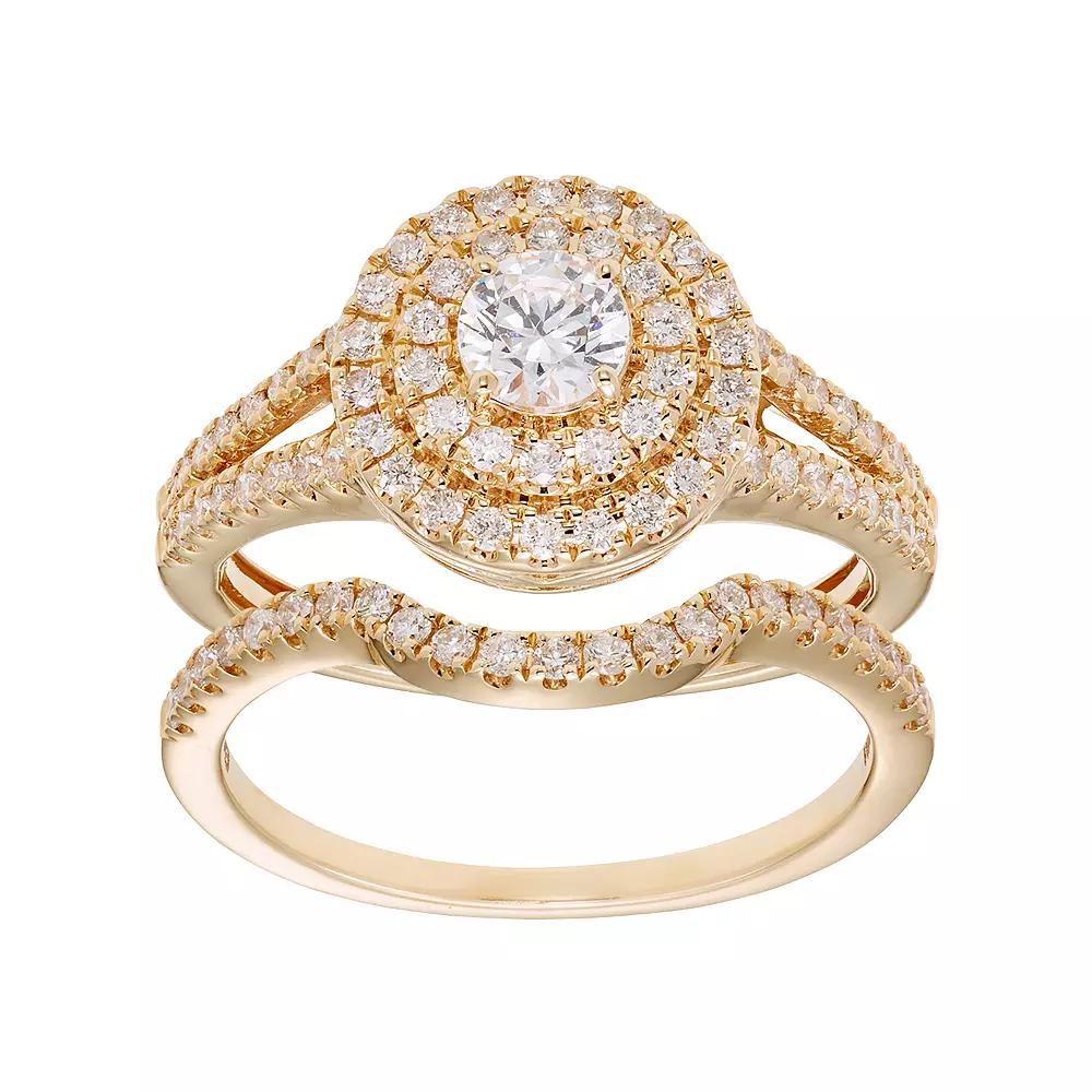 This stunning set features a 14k white gold engagement ring and matching wedding ring, both beautifully adorned with scintillating IGL-certified diamonds.SET DETAILSIncludes: engagement ring & matching shadow wedding bandTotal width: 8 mmMetal: 14k goldFinish: polishedPackaging: boxedDIAMOND DETAILSIGL certifiedTotal weight: 1 ct.Center stone weight: 1/3 ct. Color grade: HClarity: I1Shape: round brilliantSetting: prongGemstones may have been treated to enhance their appearance. Special care may be required. Please visit our Gemstone Treatment & Special Care Guide for more information.Image(s) may be enlarged to show detail.Diamond weights are approximate. Diamond total weights may vary between .01 and .08 ct. Some diamonds have fewer than 17 facets.Please note, due to the high value of this item, a signature may be required upon delivery. Size: 5. Gender: female. Age Group: adult.