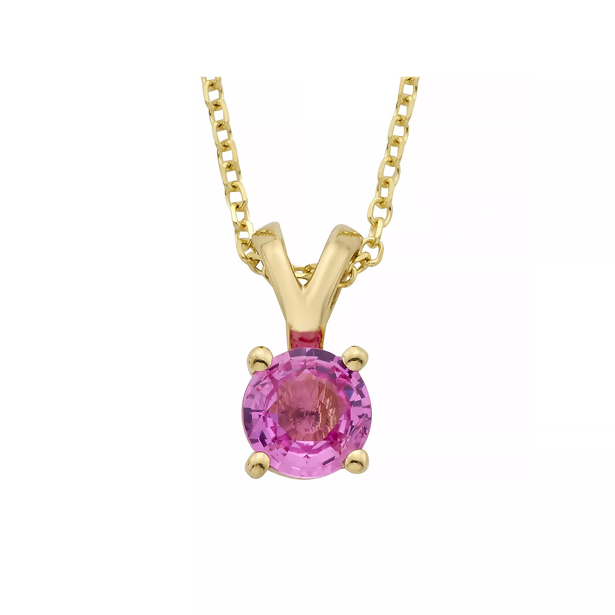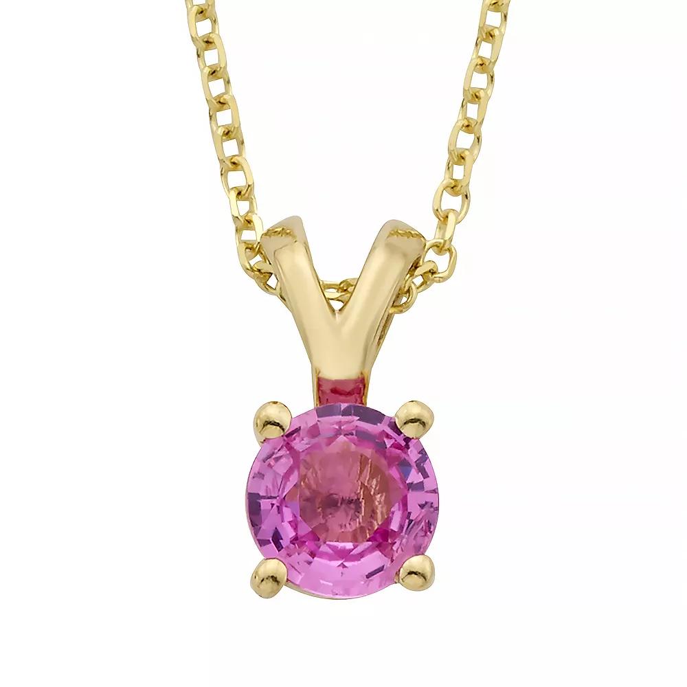 Add a touch of elegance to your ensembles with this 14k gold pink sapphire pendant from The Regal Collection. Add a touch of elegance to your ensembles with this 14k gold pink sapphire pendant from The Regal Collection. Chain length: adjusts to 18 in. Chain type: cable Clasp: lobster-claw Metal: 14k gold Finish: polished Additional details: embedded O-rings allow chain to be worn at 16”, 17” or 18” Packaging: boxed STONE DETAILS Stone type: pink sapphire Total weight: 1/2 ct. Stone size: 4.5 mm Shape: round Setting: prong Please note, due to the high value of this item, a signature may be required upon delivery. Size: 18". Gender: female. Age Group: adult.