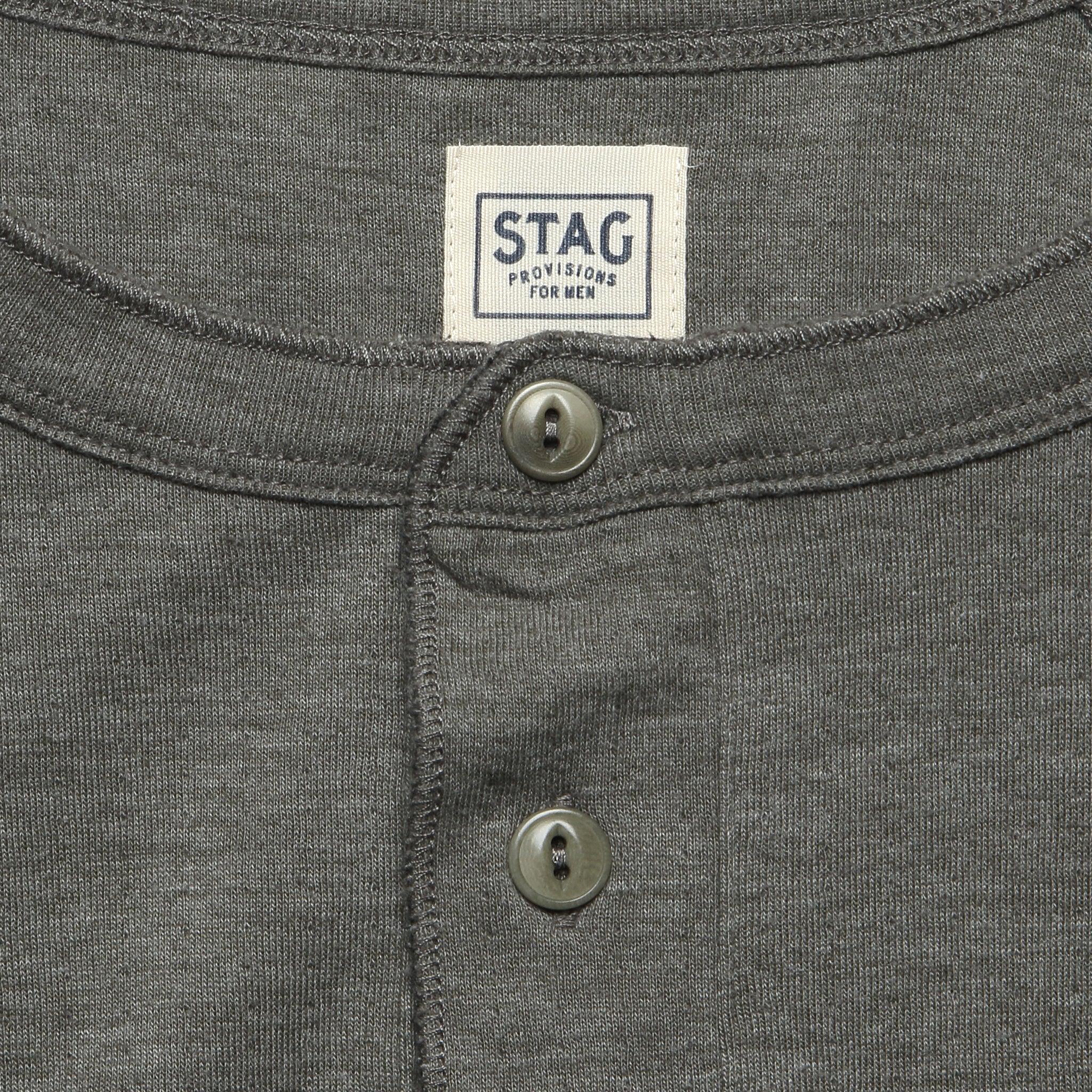 We partnered with a family-run mill in Portugal to produce our Regulation Henley that combines effortless comfort with a rugged, vintage military-inspired design to make it an easy, everyday go-to. It’s made from a custom cotton-poly blend pointelle fabric that’s super soft, breathable, and perfect for year-round wear, and comes detailed with a three-button placket, tonal stitching throughout, and tailored with a raglan sleeve for a better fit. Made exclusively for STAG Super soft cotton-poly blend Classic 3-button henley placket Raglan sleeve for extra range of motion Tonal stitching throughout Vintage-inspired cat eye buttons Traditional-relaxed fit that runs true to size We recommend taking your normal size Made in Portugal Materials: 50% cotton, 50% polyester The following measurements are for size Medium: Chest: 38” | Shoulder: 18” | Sleeve: 36” | Length: 25 ½”