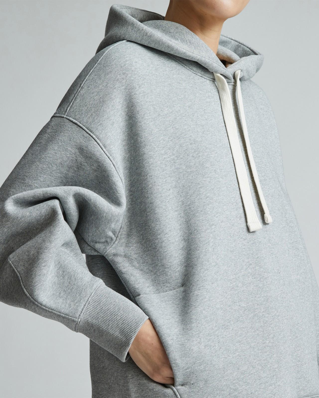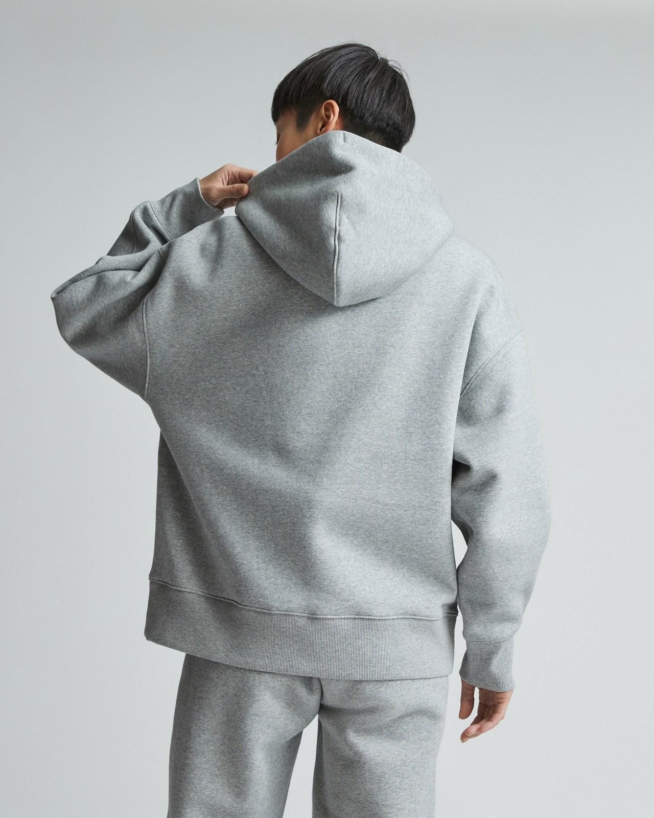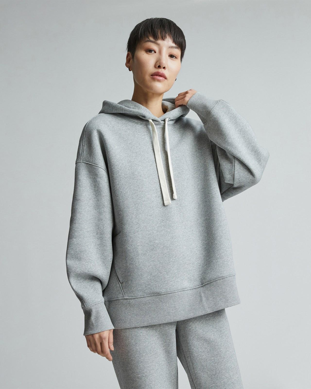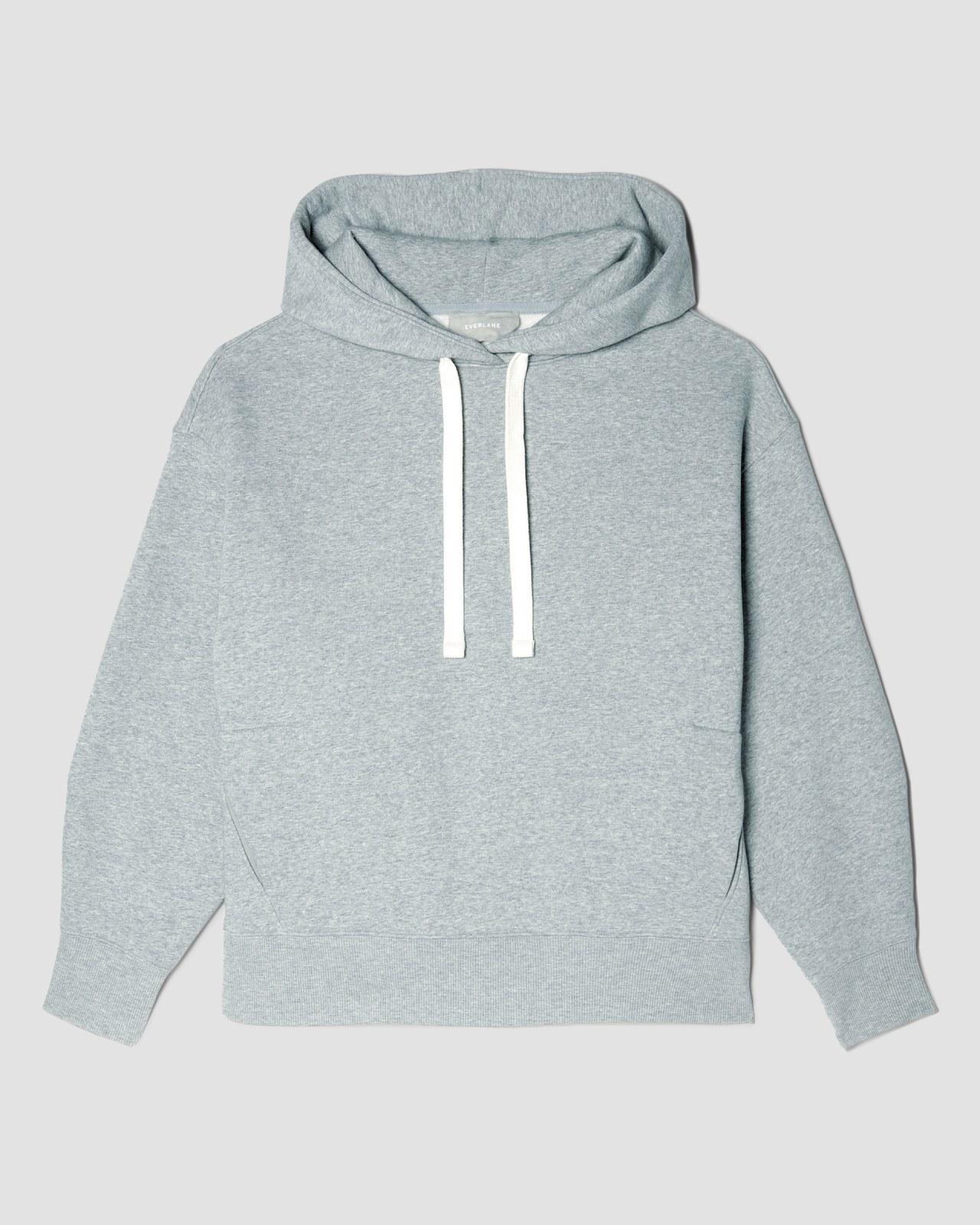 Bringing new life to recycled fabrics in classic styles. The ReTrack Hoodie combines two of our favorite things; recycled fabrics and a fit that will stand the test of time. It features a relaxed double-layer hood dropped shoulders tapered sleeves and ribbed cuffs and hem with a kangaroo pocket to keep your hands extra warm. We remixed our ReTrack family with a more premium cotton think a softer thicker warmer material with a relaxed fitperfect for lounging around or running errands on cooler days. Wherever we can we use recycled materials to lower our carbon footprint and reduce waste. Using recycled materials repurposes resources reduces inputs and diverts would-be-waste materials away from landfills. Womens ReTrack Hoodie by Everlane in Heather Grey, Size M