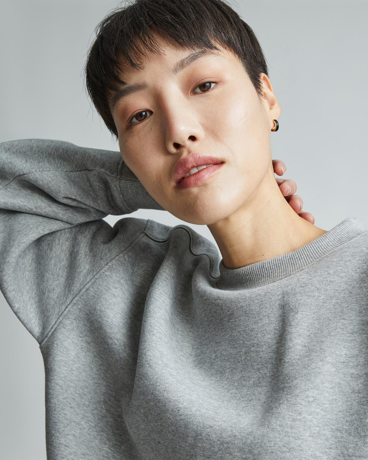 Bringing new life to recycled fabrics in classic styles. Featuring a crew neckline dropped shoulders voluminous sleeves and a relaxed fit The ReTrack Oversized Crew has a signature look that will stand the test of time. The best part? Its made with our recycled fleece fabric. Wherever we can we use recycled materials to lower our carbon footprint and reduce waste. Using recycled materials repurposes resources reduces inputs and diverts would-be-waste materials away from landfills. ReTrack Oversized Crew Neck by Everlane in Heather Grey, Size XL