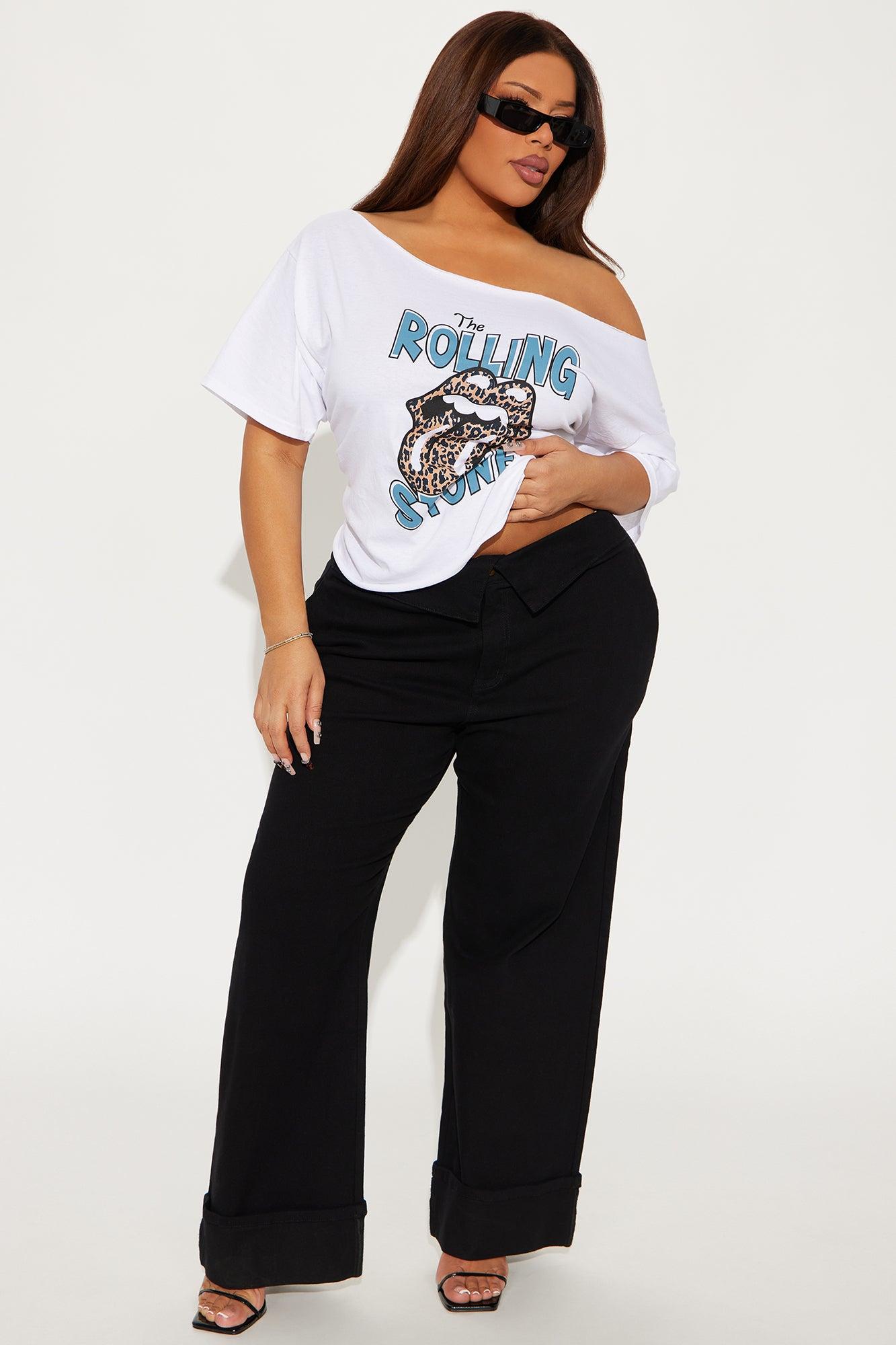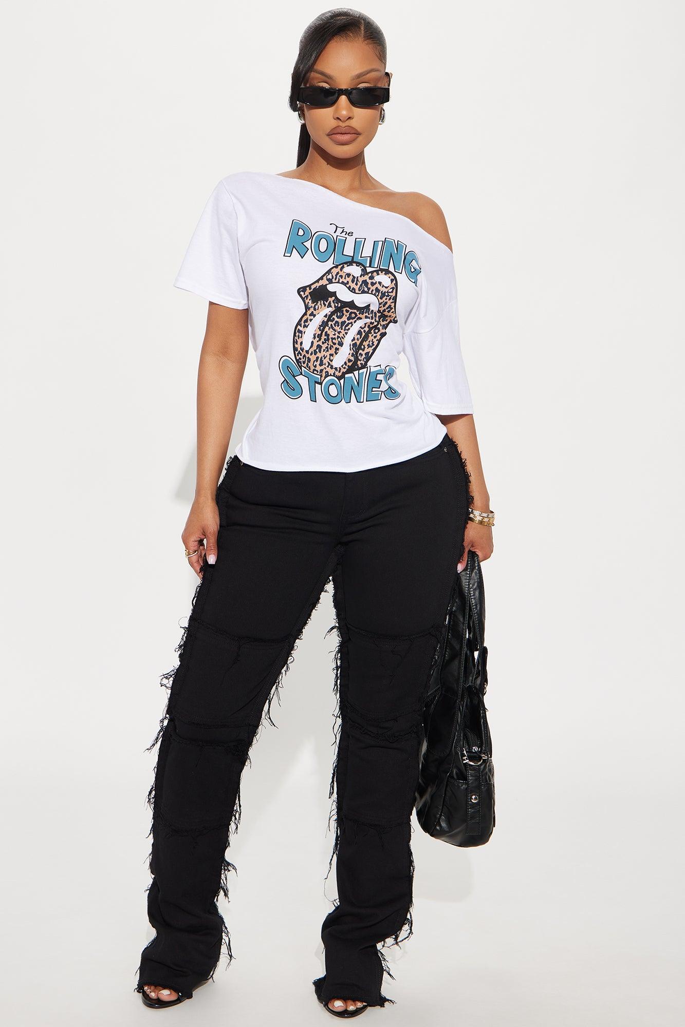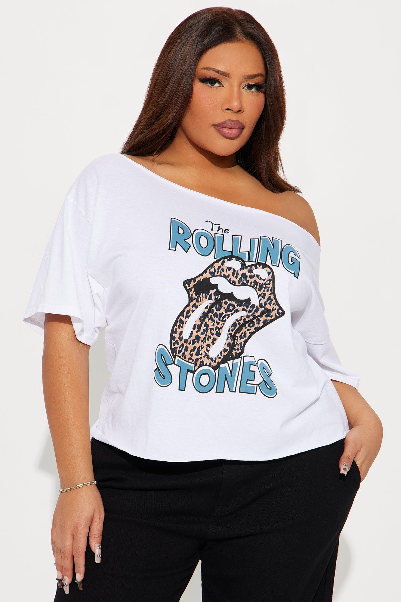 The Rolling Stones Leopard Off Shoulder Top - Cream