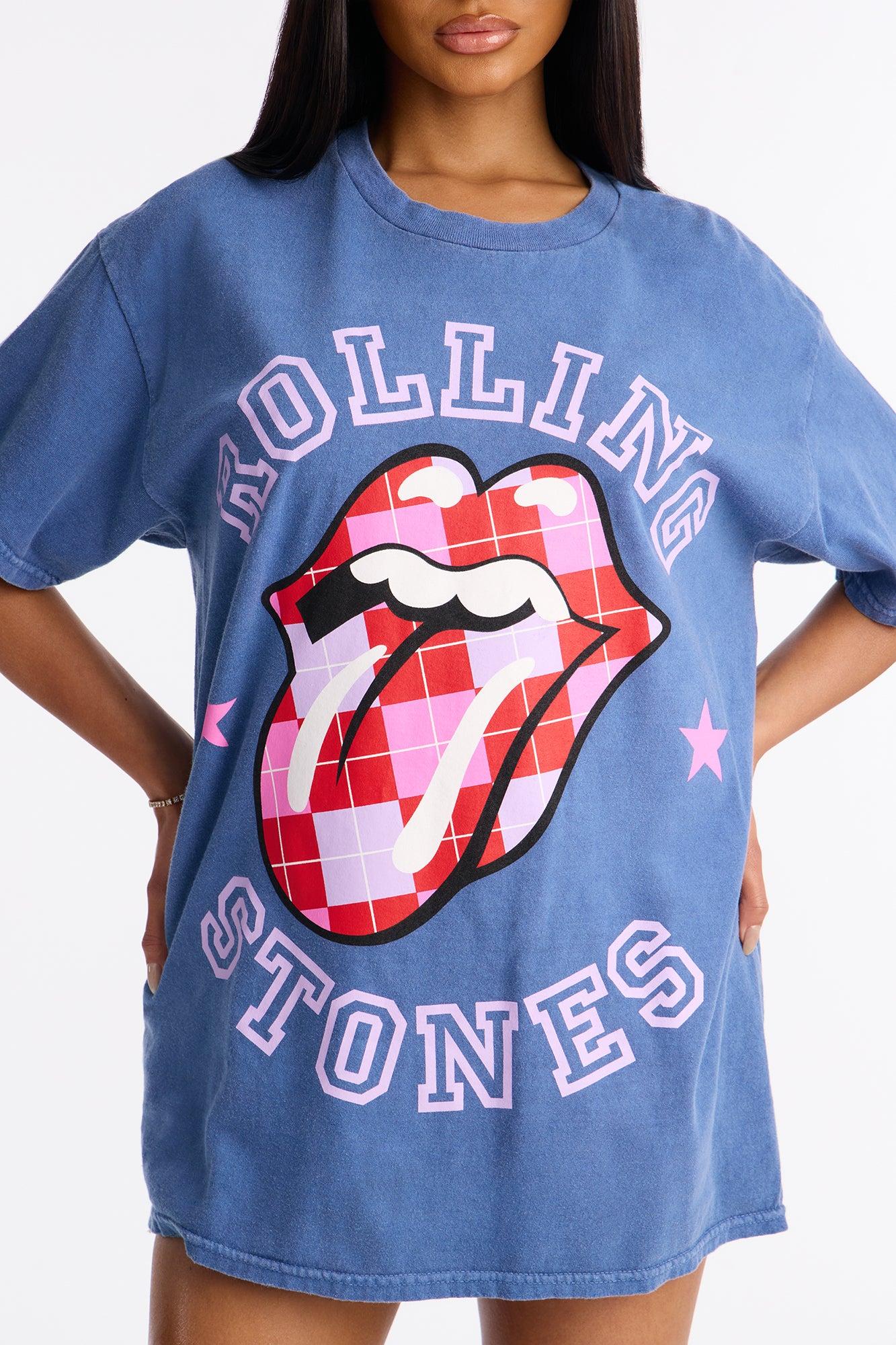 The Rolling Stones Washed Plaid Tongue Tee - Blue Female
