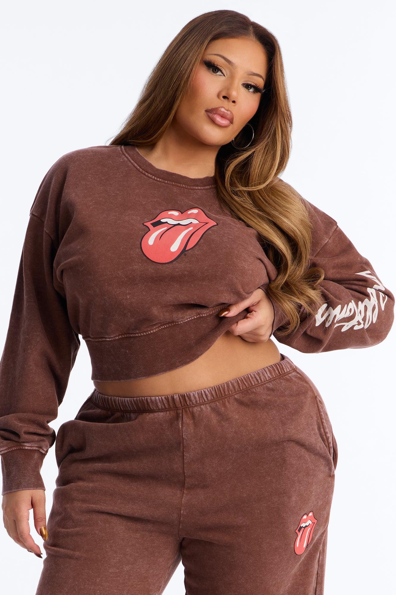Available In Brown. Crew Sweatshirt Long Sleeve Washed Cropped Pair With "The Rolling Stones Washed Pant" Disclaimer: Due To The Specialized Wash, Each Garment Is Unique. Self: 88% Cotton 12% Polyester Imported