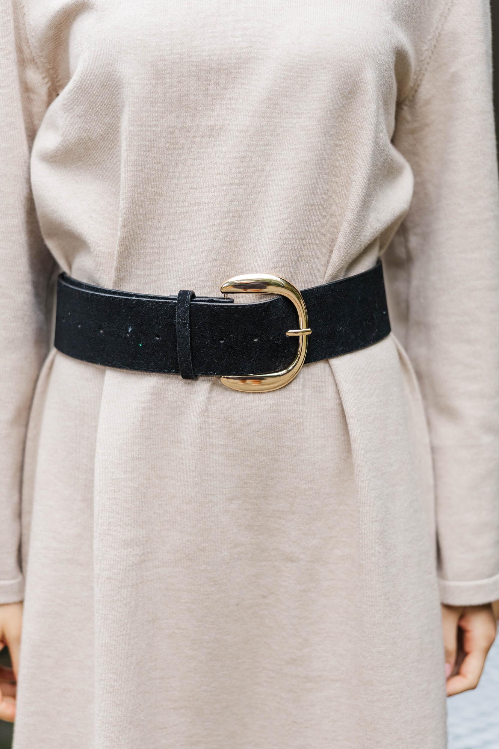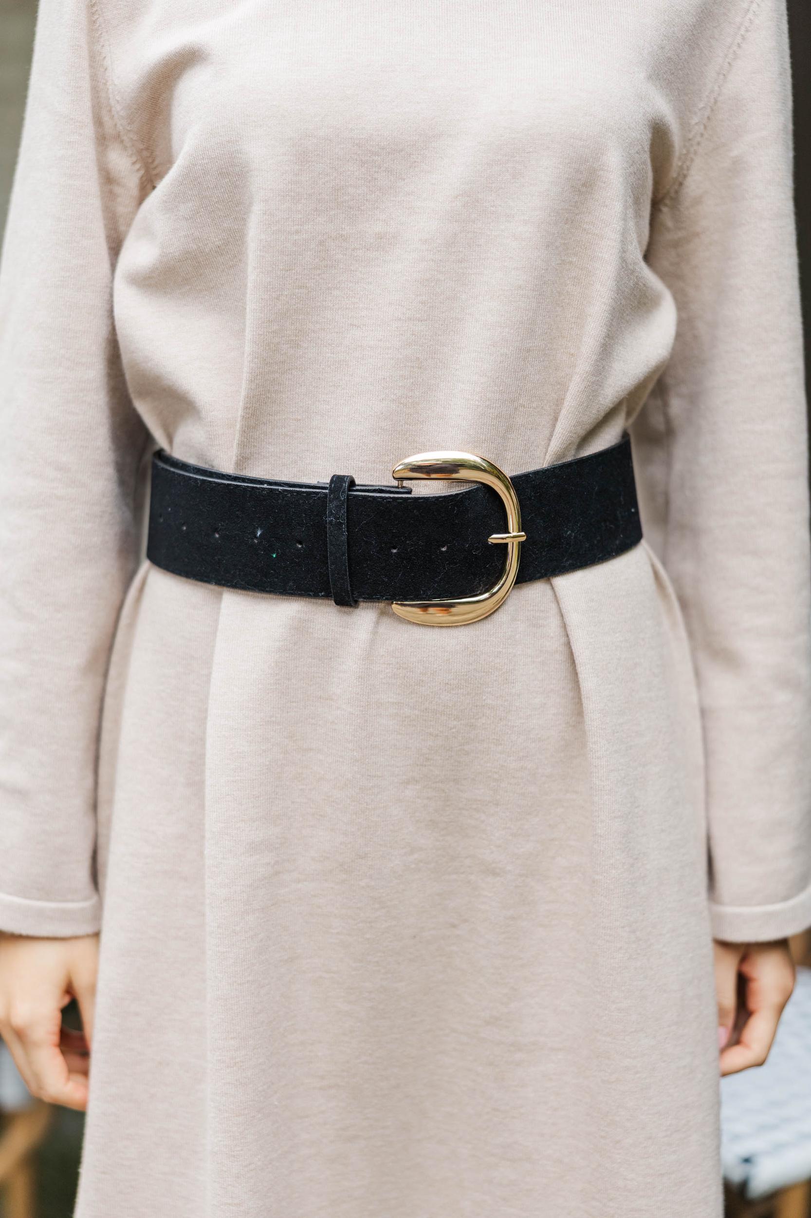 This chic black belt is the perfect finishing touch to instantly elevate any outfit! The soft suede-like texture and shiny gold buckle make it feel luxe while still being totally wearable for everyday looks. Whether you’re cinching a dress or styling it with high-waisted denim, this classic accessory ties everything together with ease.