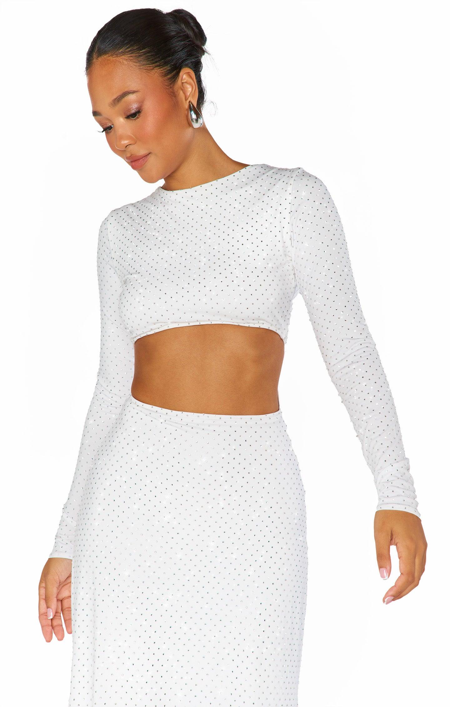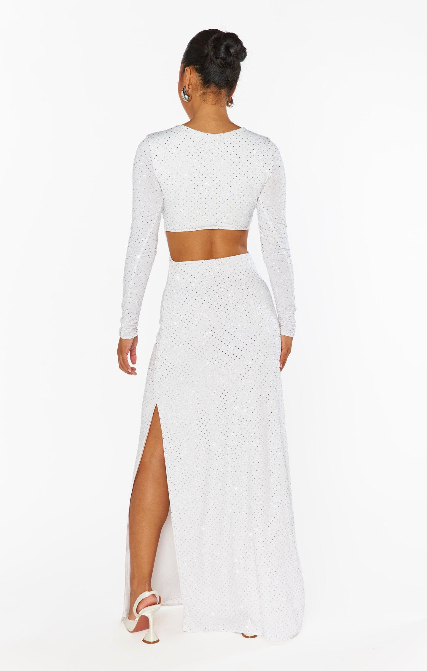 The Sleek Maxi Dress ~ White Rhinestone Spandy